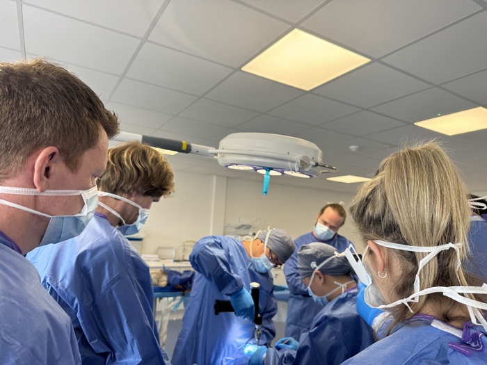 示范结束后,参会的英国兽医们迅速完成分组,以饱满的热情投入到实操练习中,将理论知识与临床实践深度融合。Dr.周珞平与Dr.周乾兰两位老师穿梭在各个小组之间,耐心细致地解答疑问,手把手指导操作细节,及时处理各种实操细节问题,现场弥漫着专注而热烈的学习气息!