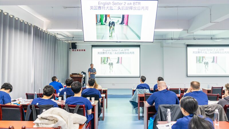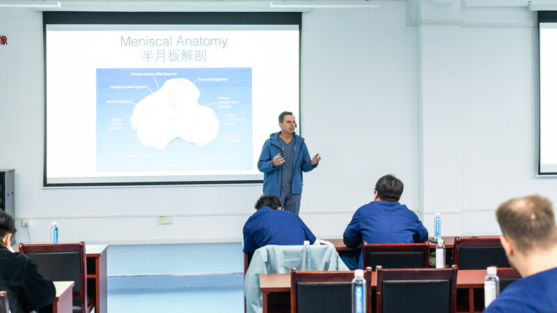 The four-day small animal arthroscopy course has quietly reached its final stage, and today marks the last class packed with essential takeaways! As the grand finale of the course, the first session was presented by Dr. Brian Beale, who delivered an insightful lecture on advanced knee arthroscopy, injecting core energy into this professional feast. From clinically common medial patellar luxation and tricky meniscus tears to the precise diagnosis required for osteochondritis dissecans, Dr. Beale combined a wealth of clinical cases to break down key surgical steps and address common diagnostic pitfalls, making complex knowledge clear and easy to understand. The professional translation team provided full support throughout, accurately conveying every detail to help the attending veterinarians fully grasp the core points and solidly master practical knowledge that can be directly applied in clinical practice, bringing the course to a successful conclusion.