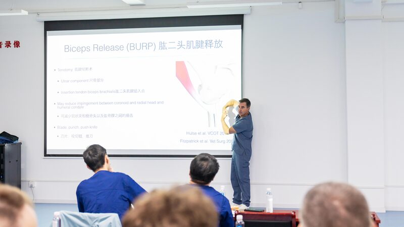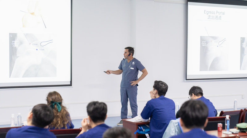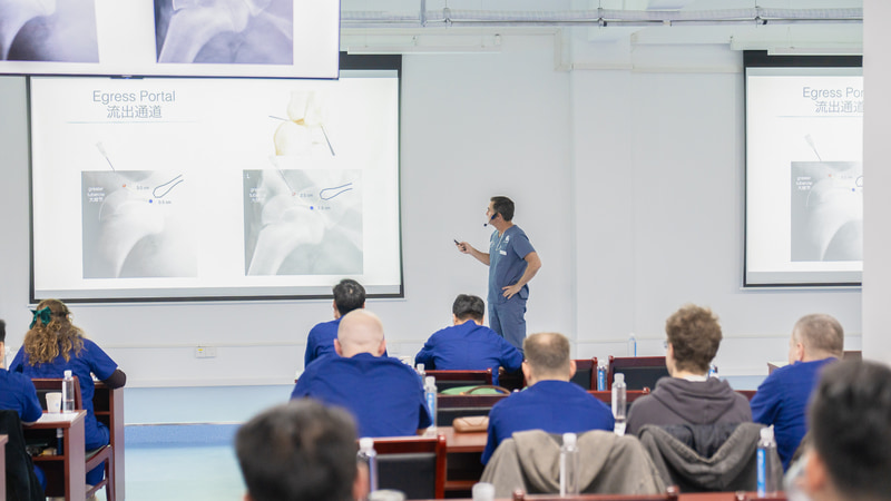 In the lingering immersive experience of the elbow joint hands-on training, the afternoon kicks off with the first core course — a special session on shoulder arthroscopy. This course is again led by the experienced instructor Dr. Brian, achieving a seamless teaching transition from elbow joint to shoulder joint techniques. The course continues with the dual-track teaching model of 'in-depth theory explanation and hands-on practice.' Dr. Brian conducts an in-depth analysis of key technical points and clinical challenges in shoulder arthroscopy, combining structured explanation with practical guidance. This helps participating doctors systematically organize the technical logic, turning each knowledge point into practical skills that can be directly applied in clinical practice, leading to deeper understanding and more confident execution!