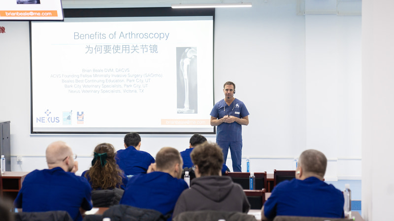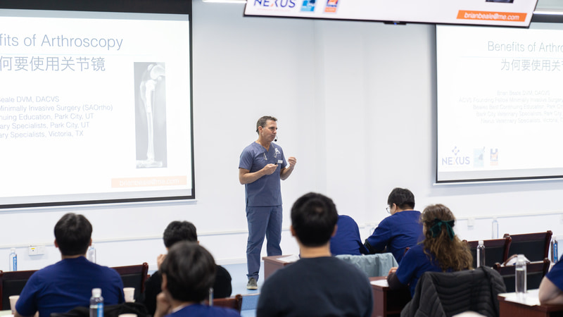 The course began with a highlight—the first lecture was delivered by global small animal orthopedic expert Dr. Brian Beale. With his profound academic background and extensive clinical experience, Dr. Brian Beale analyzed layer by layer focusing on "The Clinical Advantages of Arthroscopy," clearly illustrating the unique value and breakthrough significance of Bailu Arthroscopy in clinical practice. Special thanks to teachers Zhou Luoping and Li Wanfang for their professional translation; they accurately conveyed the key points of the lecture, laying a solid communication bridge for the smooth progress of the course.