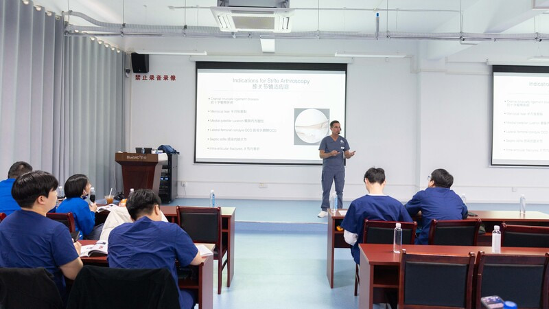 In class, doctors from eight countries fully engaged and actively participated in discussions, creating a strong academic atmosphere. The comfortable learning environment complemented the comprehensive and practical course content, enabling each participant to efficiently master core arthroscopy skills and steadily enhance their professional capabilities.