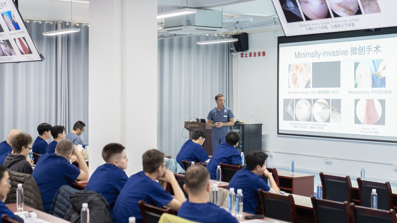 The excitement of the annual orthopedic event still lingers, and the feast of cutting-edge technology begins a new chapter! As the BlueSAO Bailu International Veterinary Orthopedics Annual Conference successfully concluded, the Bailu Arthroscopy International Class followed, igniting a wave of learning enthusiasm among veterinary orthopedic doctors worldwide with top-notch instructors and hands-on courses! We warmly welcomed 32 doctors from 8 countries (China, Russia, Belarus, the United States, Turkey, South Korea, Thailand, and Japan) to gather at Bailu's domestic training center to explore the essence of arthroscopy technology together.