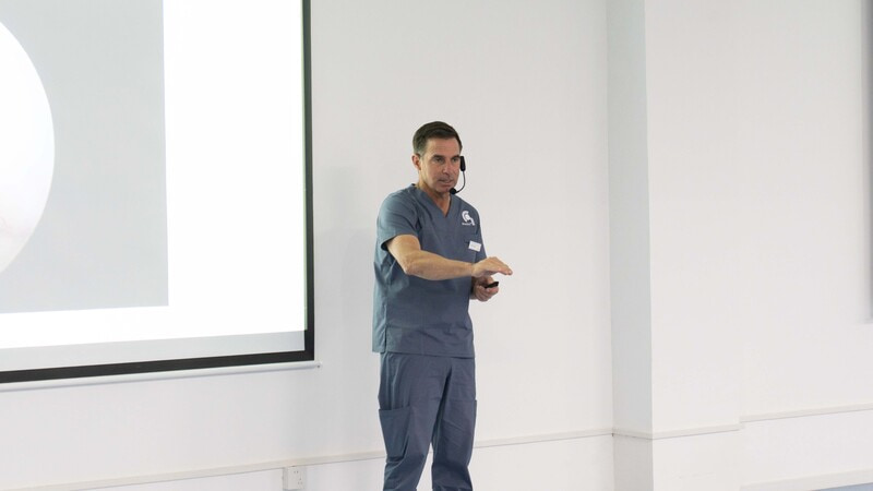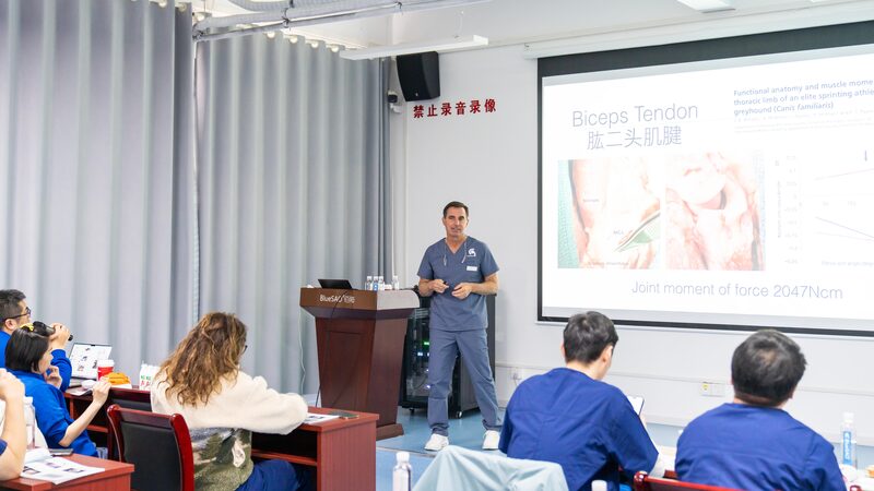 The exciting continuation of the BlueSAO International Arthroscopy Course! Amid the eager anticipation of the participants, internationally renowned small animal orthopedic expert Dr. Brian Beale delivered the first session of the day. Dr. Brian began by systematically reviewing and summarizing the core content from the previous day, connecting fragmented topics into a complete knowledge framework and strengthening the theoretical foundation for the attending doctors.
