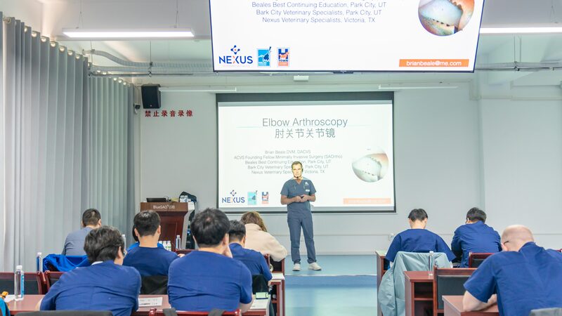 Subsequently, Dr. Brian focused on the clinical application of arthroscopy in elbow surgery, delivering an in-depth and substantive lecture! He systematically broke down the surgical steps by combining a vast number of real clinical cases, providing detailed analysis and emphasizing key operational actions, anatomical landmarks, and intraoperative considerations. Through concrete case studies and precise technical breakdowns, the attending doctors were able to clearly understand the clinical application logic of arthroscopy and deeply appreciate the precision and standardization of top-level veterinary orthopedic techniques, providing practical guidance for clinical practice.