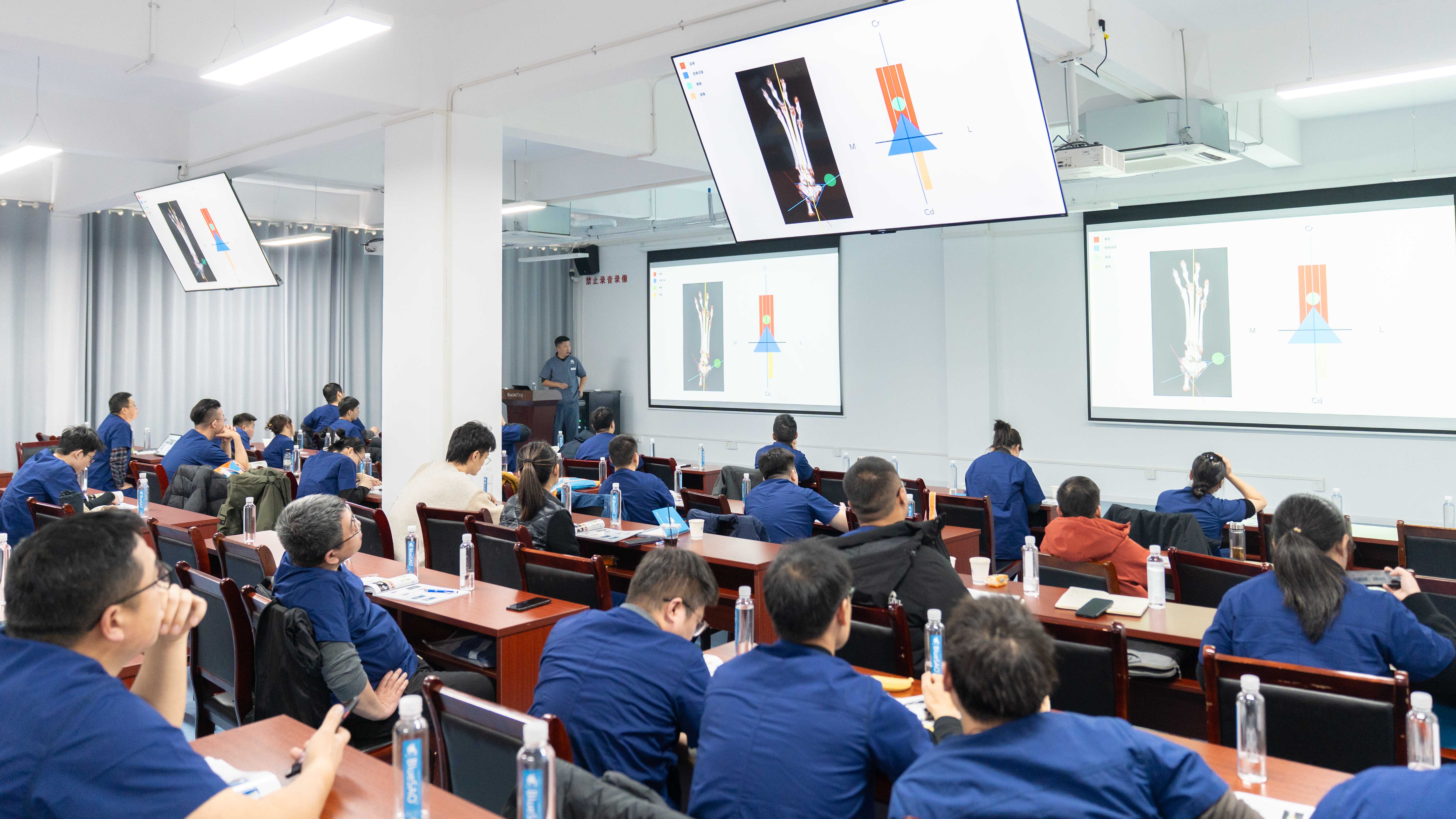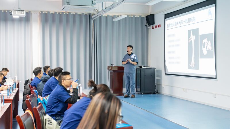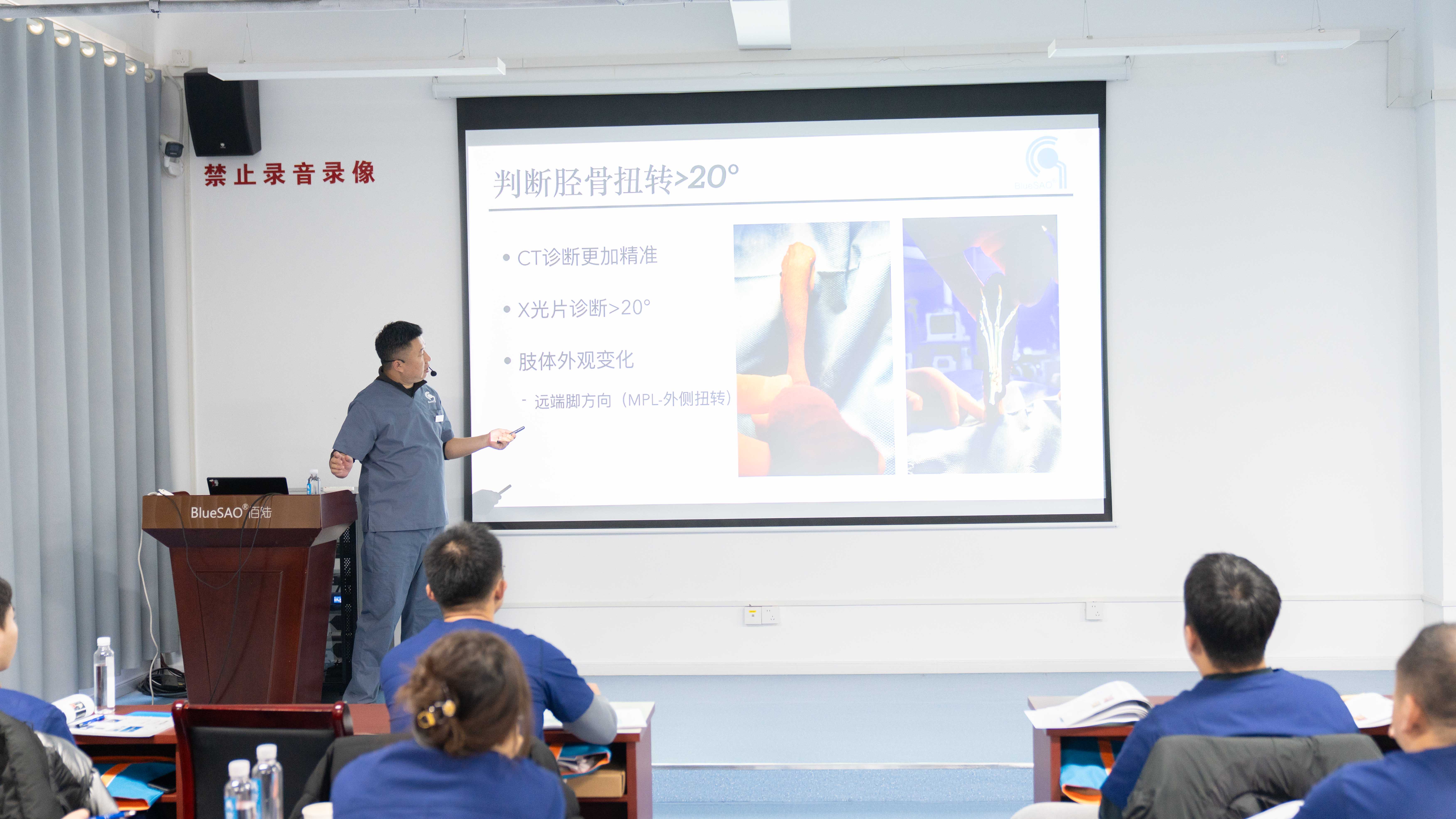 短暂午休过后,下午的培训课程热力续燃!贾新生老师围绕“胫骨扭转超20°的矫正”这一临床重难点展开深度讲解。他以清晰的逻辑层层递进,逐步拆解手术关键步骤。讲解内容重点突出、详略得当,既强调了技术细节的操作要领,又针对临床易踩的误区、突发状况的应对策略展开细致解读。为参训医生的实操练习筑牢理论根基。现场医生积极提问,贾老师逐一答疑,学习氛围格外热烈。