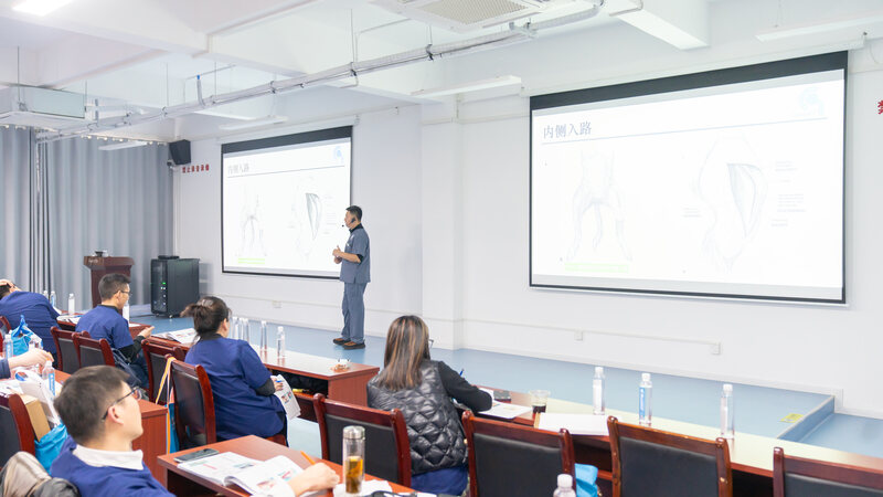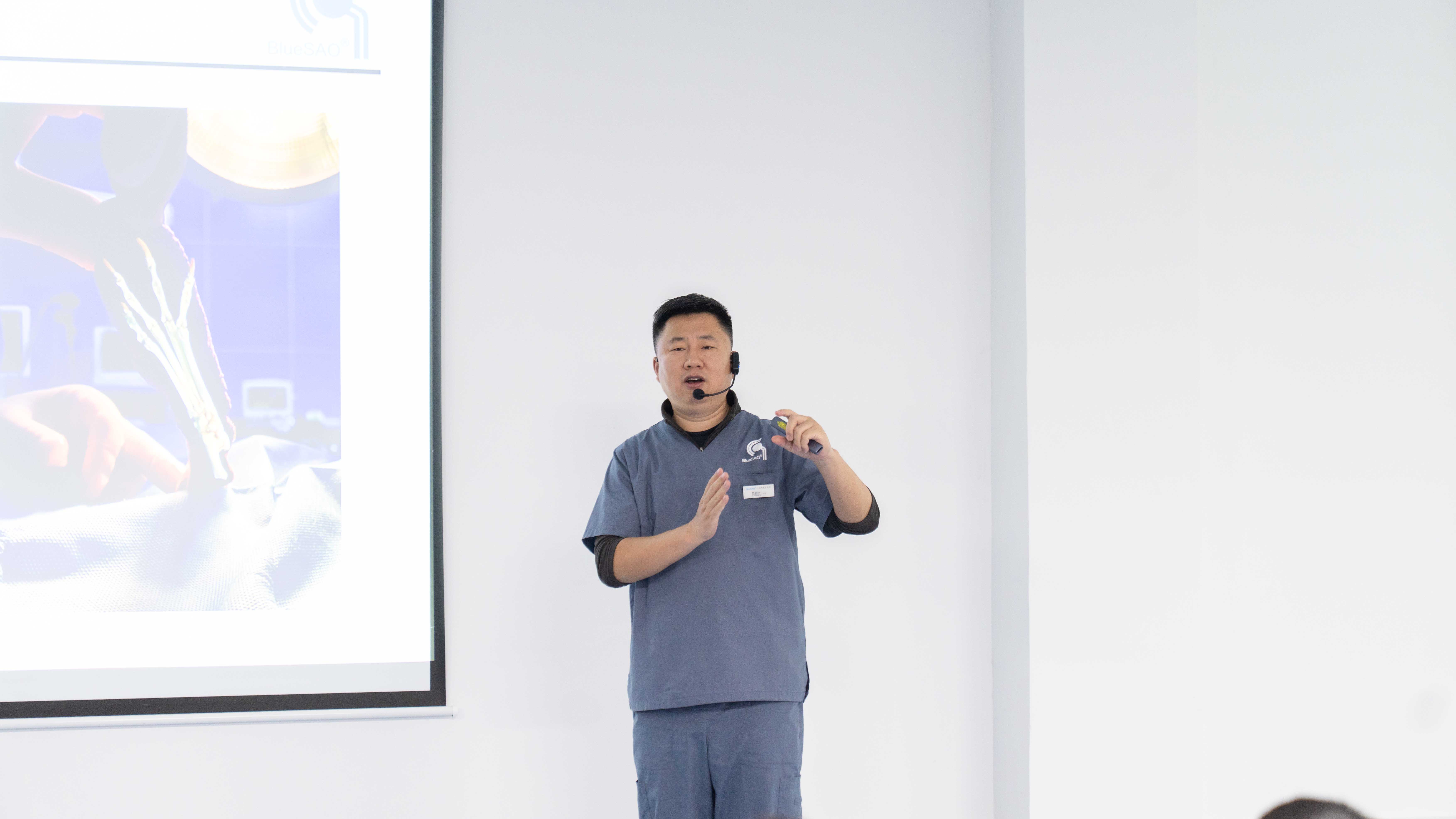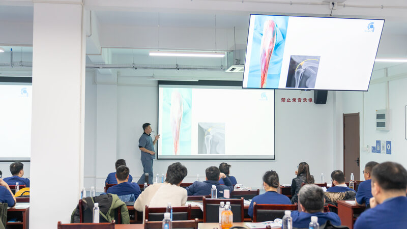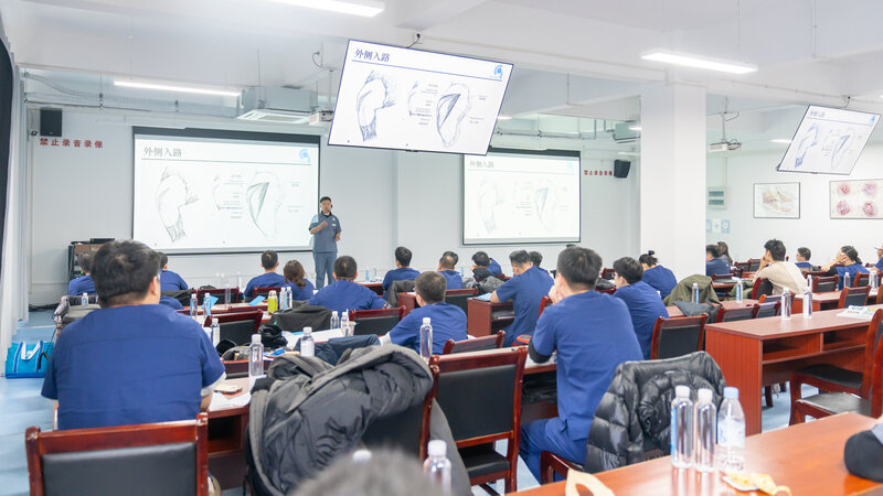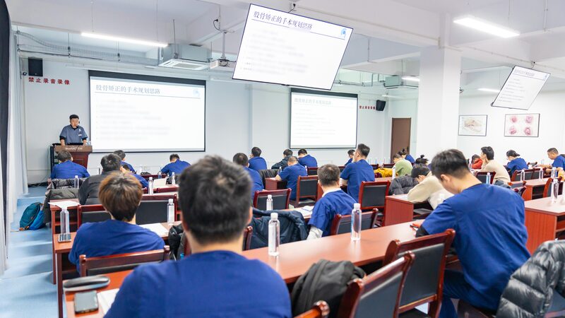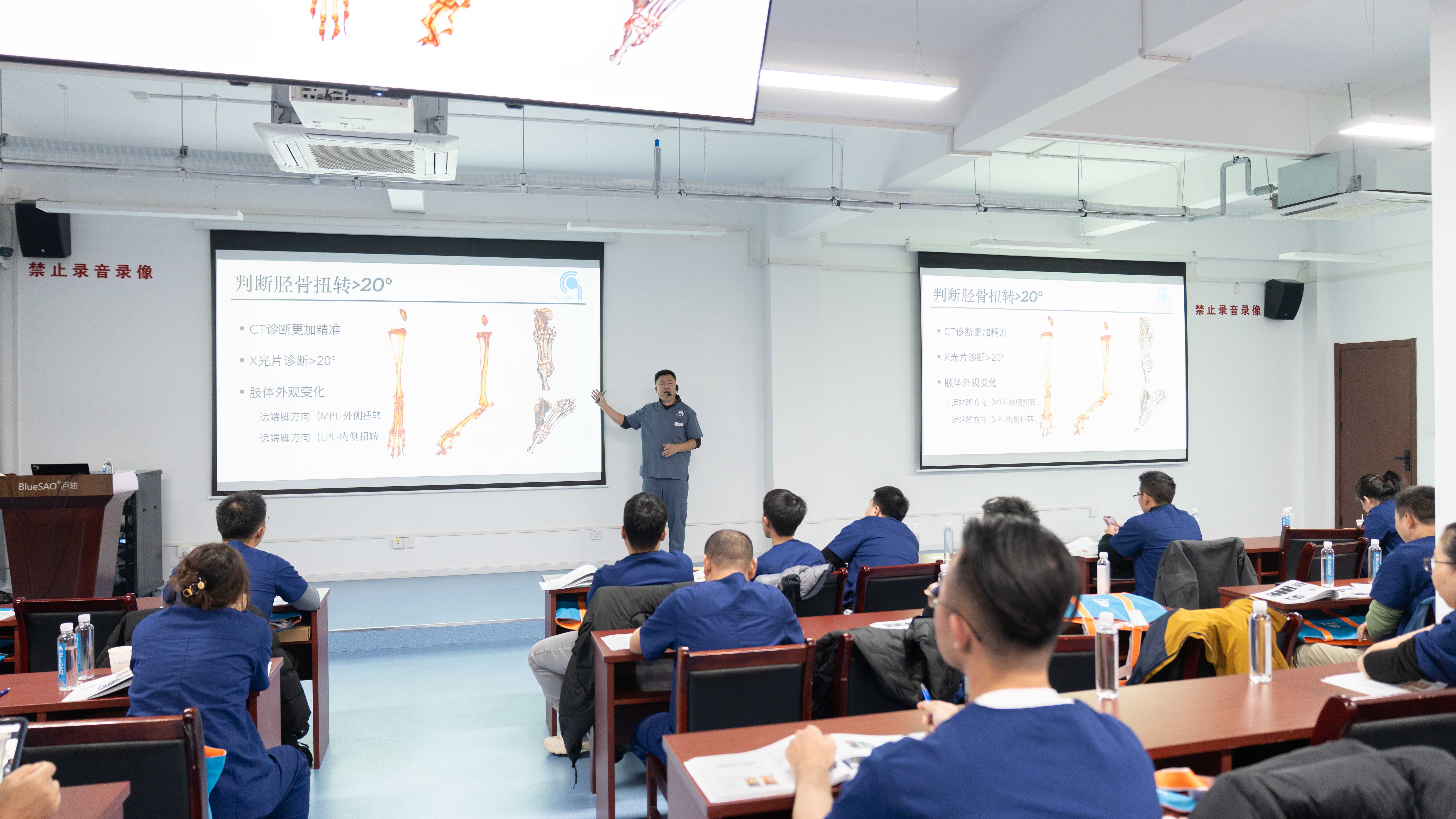 短暂午休过后,下午的培训课程热力续燃!贾新生老师围绕“胫骨扭转超20°的矫正”这一临床重难点展开深度讲解。他以清晰的逻辑层层递进,逐步拆解手术关键步骤。讲解内容重点突出、详略得当,既强调了技术细节的操作要领,又针对临床易踩的误区、突发状况的应对策略展开细致解读。为参训医生的实操练习筑牢理论根基。现场医生积极提问,贾老师逐一答疑,学习氛围格外热烈。