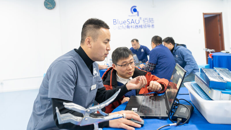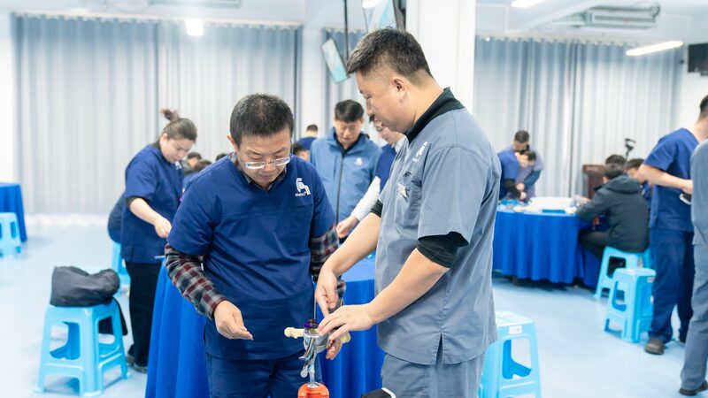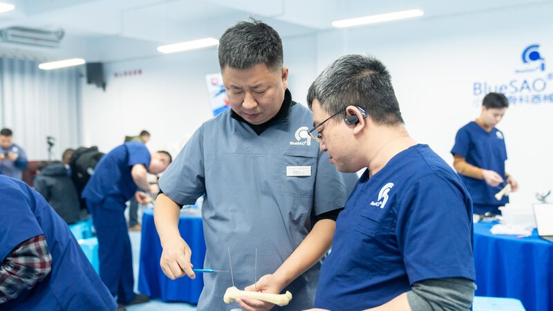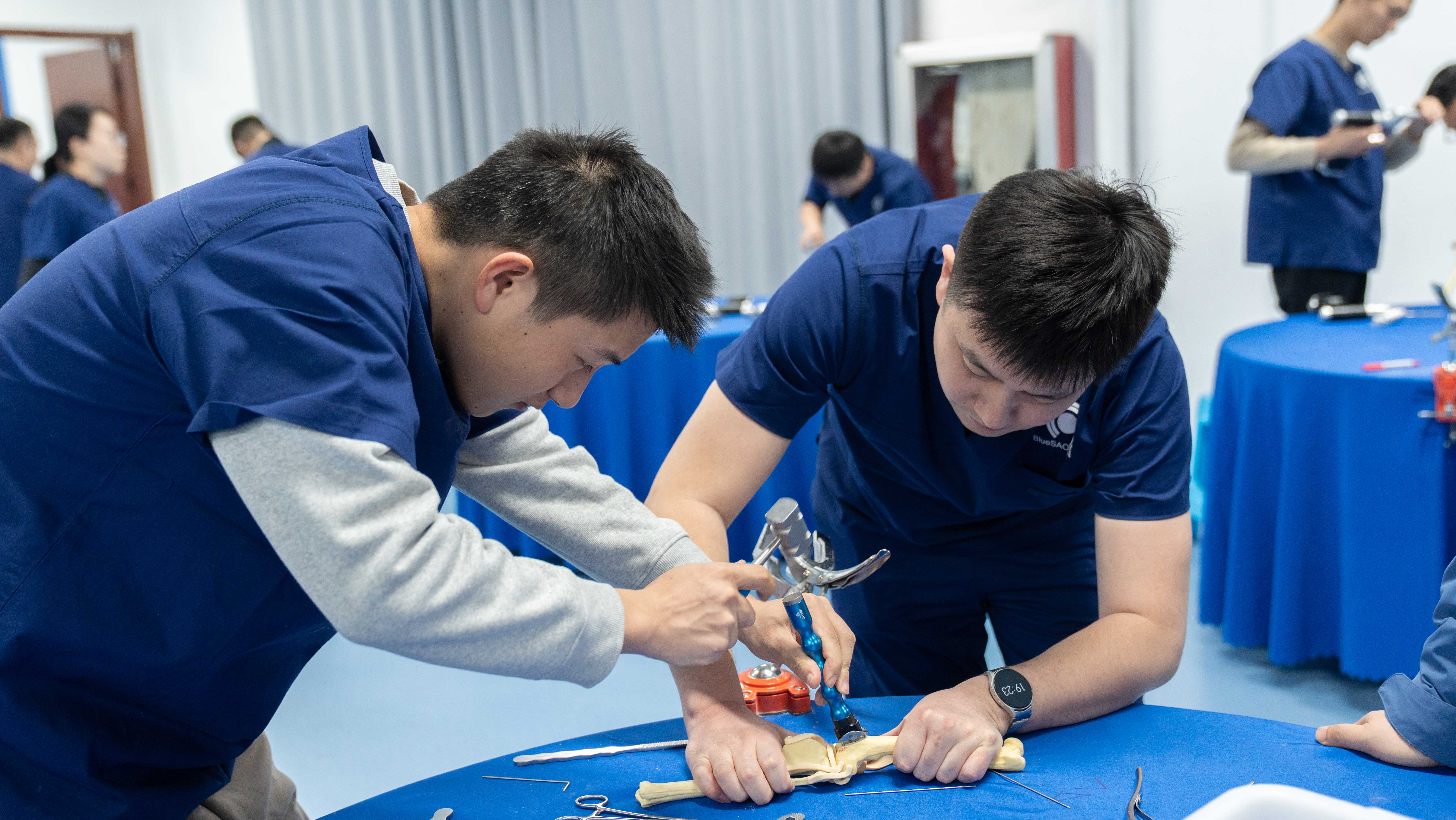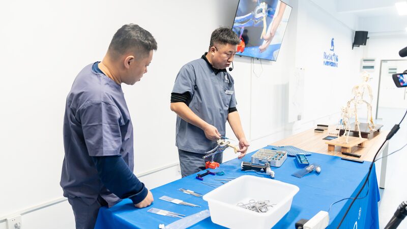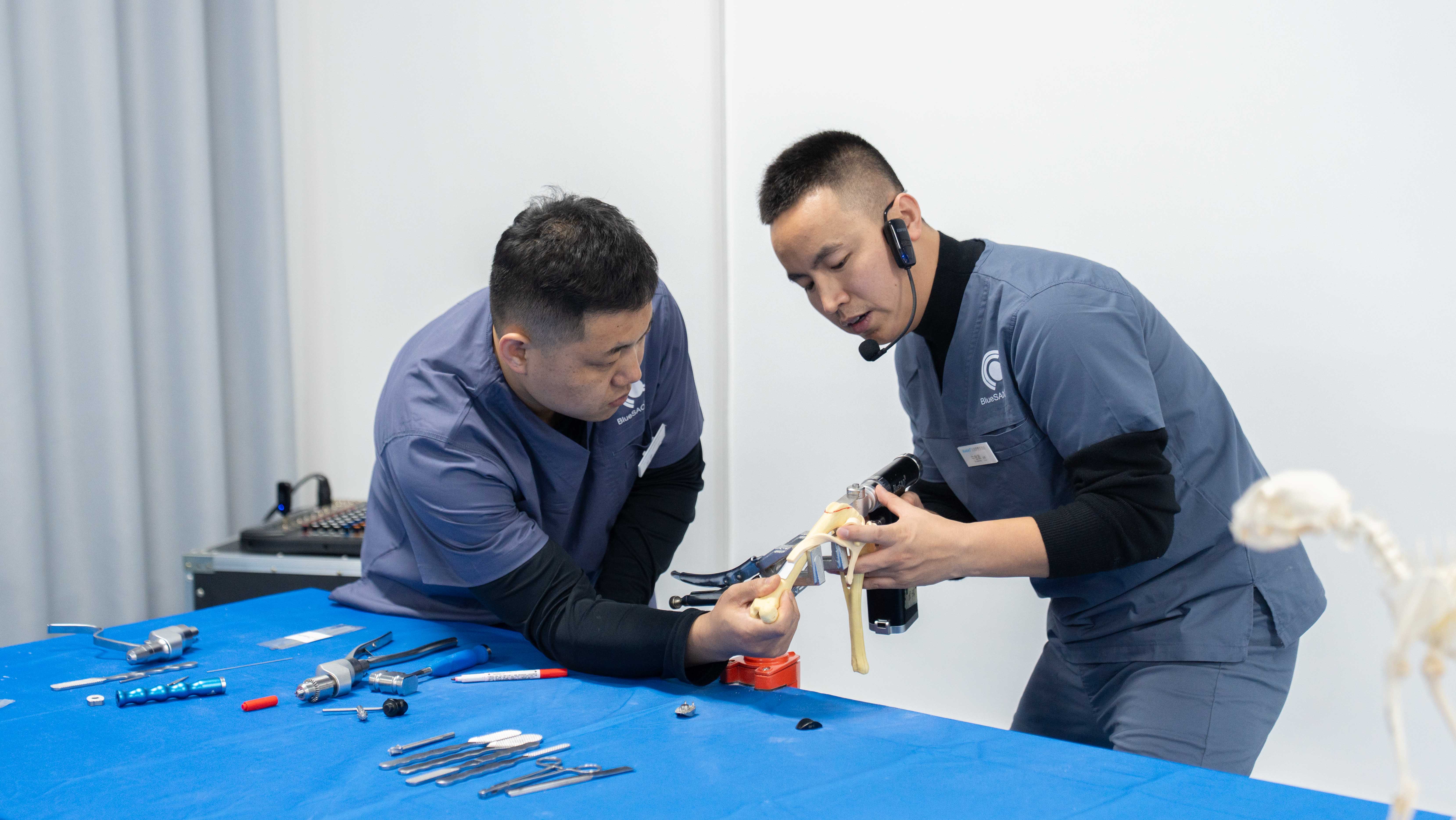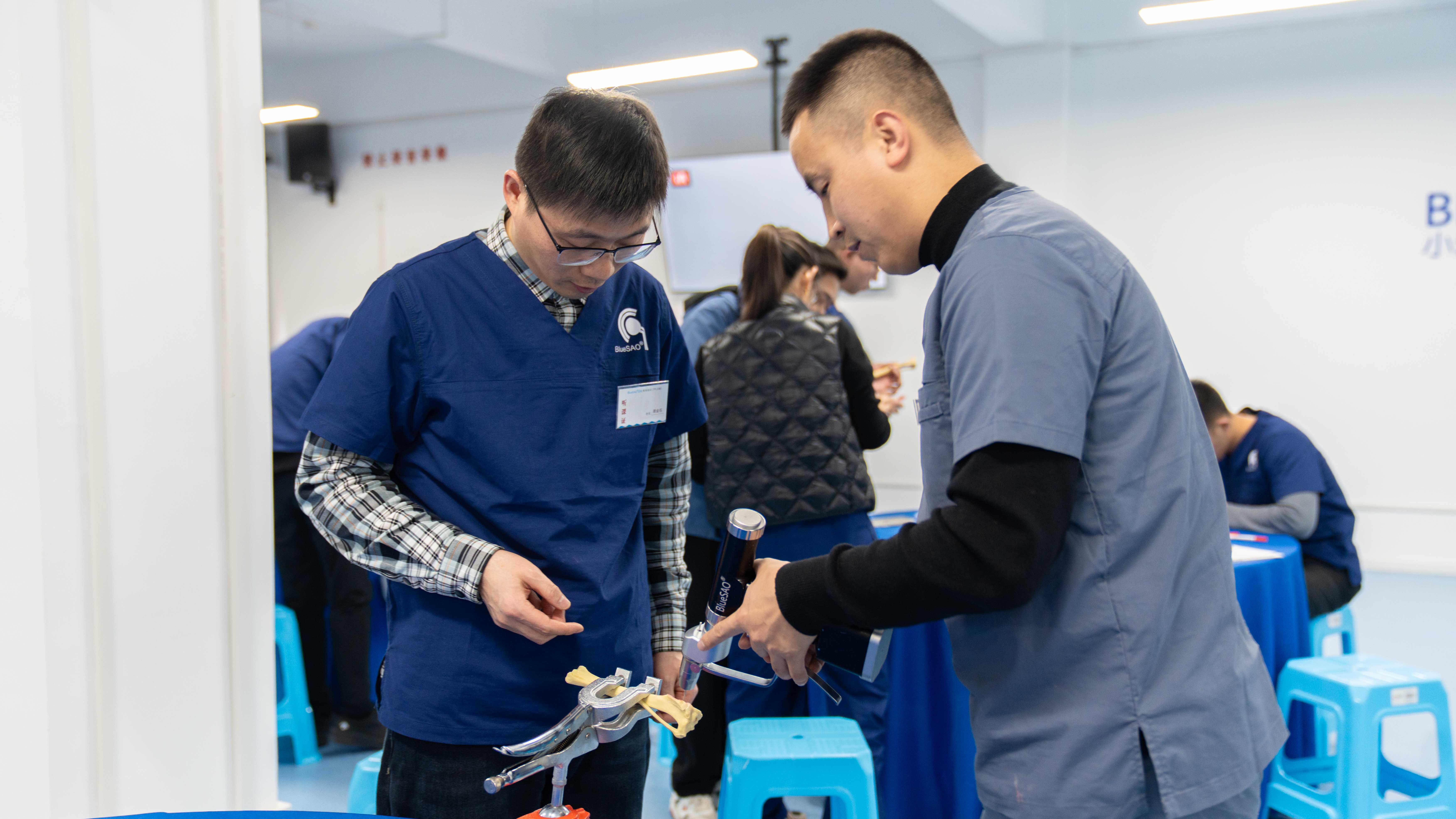 针对小动物膝关节严重病变,滑车沟置换术(PGR)是一项卓有成效的临床解决方案。在牛金波老师的带领下,本次培训迎来备受瞩目的核心实操环节——BlueSAO佰陆全球首发、自主研发的压配式生物型滑车沟置换系统(PGR)实操练习。依托佰陆创新设计的专业化手术器械,再搭配三位资深兽医骨科专家的全程一对一精准教学,每位参会医生不仅迅速吃透手术操作的核心要领,更在标准化的流程指引下,顺利完成从理论认知到实操技能的高效跨越。这场沉浸式实操,为医生们今后开展相关精准诊疗工作,积累了扎实且宝贵的实战经验。