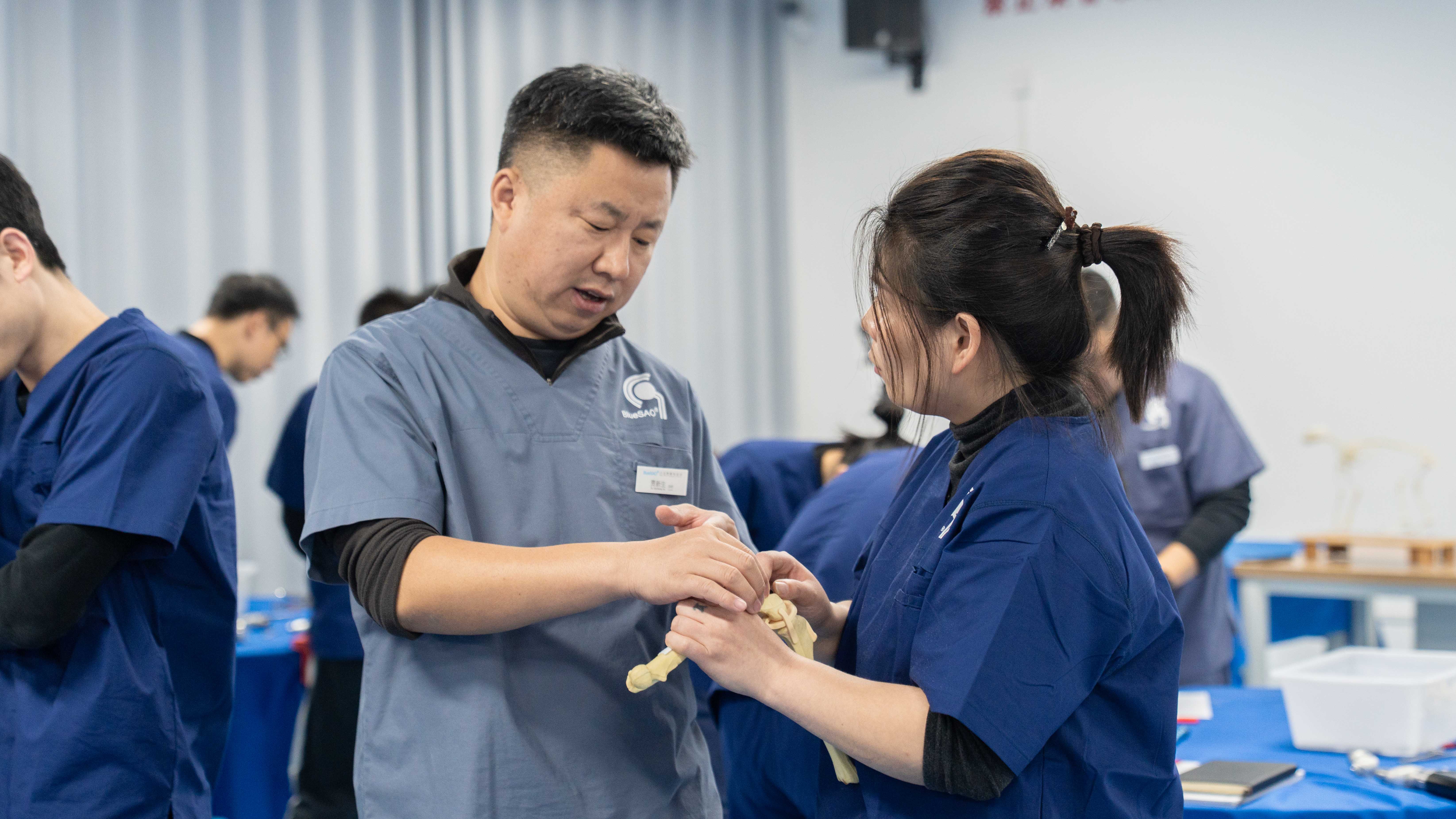 这种学用结合的沉浸式教学模式,让原本抽象的原理和手术要领,在亲手操作中变得具体可感。大家纷纷表示,通过理论加实操的双重学习,不仅对技术要点理解更深刻,知识掌握也更扎实、更透彻!