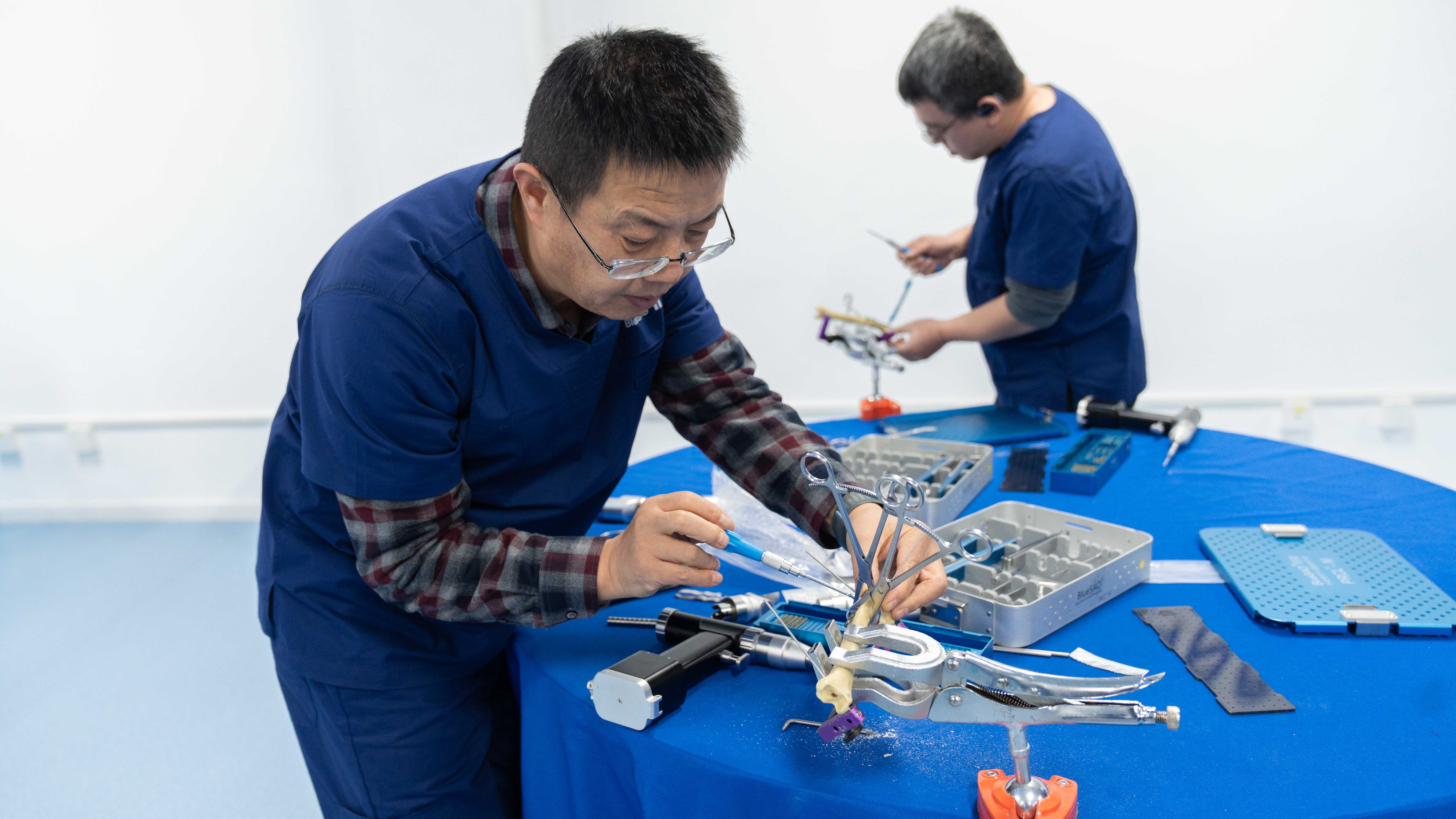 夜幕悄然降临,佰陆骨科培训的滑车沟置换实操课程却依旧热度高涨!大家始终保持着高昂的精神状态,在三位老师的指导下,全神贯注投入到实操练习中,专注研讨技术细节、反复打磨操作手法,现场学习氛围浓厚热烈!