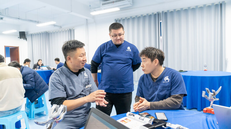 夯实理论基础后,贾新生、牛金波、孙康三位老师即刻开启模型实操环节。他们针对每一位参训医生的操作手法进行手把手细致指导,助力大家将课堂所学的理论知识,精准转化为规范的手术操作技巧。