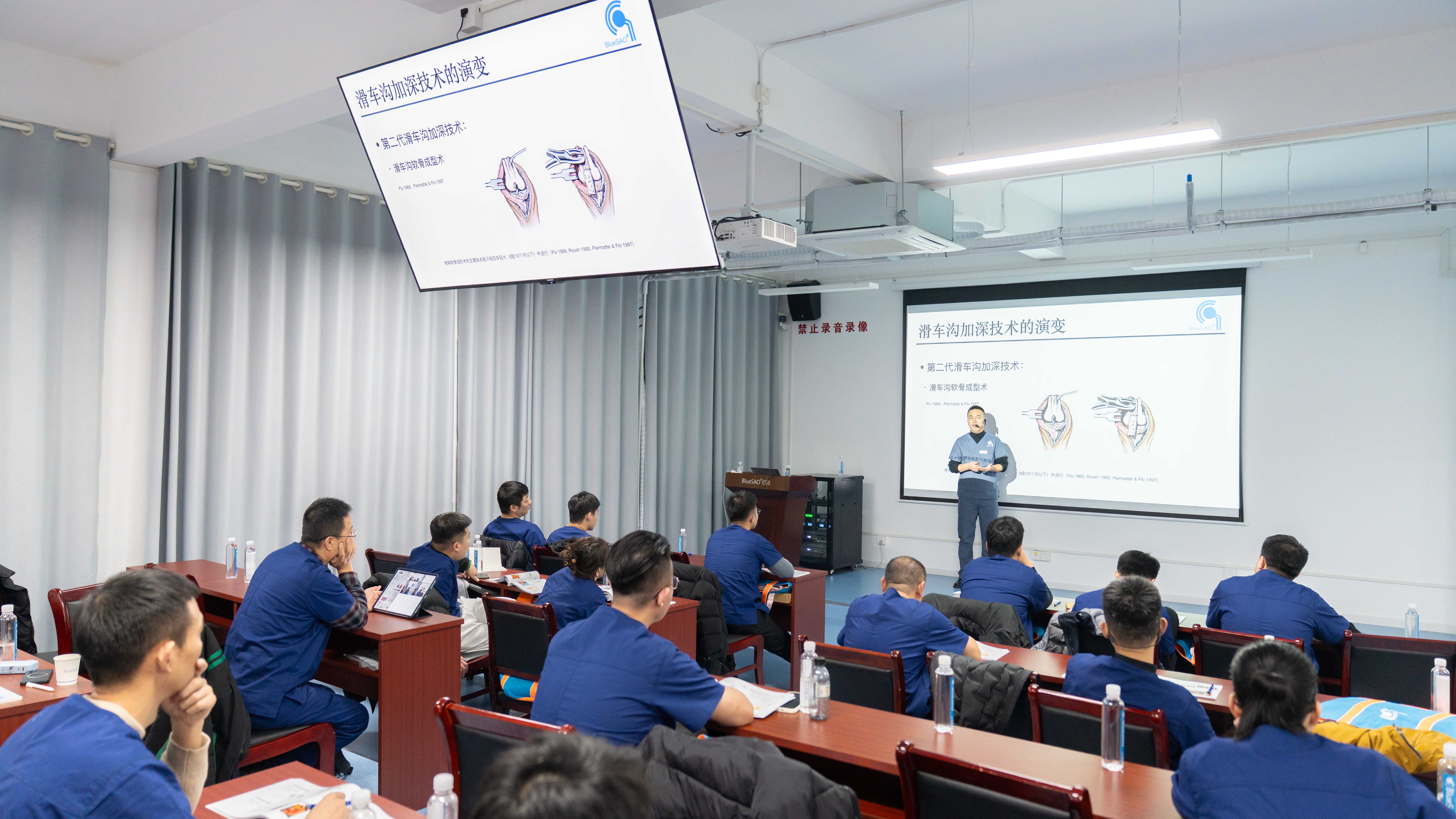 贾新生老师依托“超200例佰陆压配式生物型滑车沟置换”的真实临床病例的积淀,围绕滑车沟的临床评估维度与个体化治疗决策展开深度解析。课程中,他特别结合佰陆关节镜在滑车沟置换术前精准评估中的实操应用,通过病例对照的方式,直观呈现关节镜技术对治疗方案优化的关键作用。最后,贾老师基于大量临床实践数据与诊疗经验,明确总结:PGR是治疗相关髌骨脱位病症的核心且重要的措施,为参训医生的临床诊疗提供了极具指导性的参考依据。