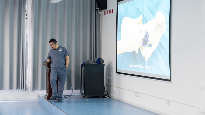 本期全髋置换(THR)班进入次日实战阶段!小动物骨科资深专家周珞平老师聚焦佰陆仿生髋关节置换系统,为参会医生们开展手术流程专项解析,兼具专业性与实操性。依托丰富临床及授课经验,周老师将手术流程模块化拆解,从术前评估、假体适配、术中操作到术后护理及并发症预防,逐一梳理核心环节。结合典型案例剖析难点易错点,以可视化讲解化繁为简,助力学员快速掌握关键技术。课堂互动热烈,周老师耐心解答每位医生的个性化疑问,倾囊分享实战经验,与学员深度探讨,实现高效双向交流。本次课程内容精炼、讲解透彻,兼顾标准流程与突发应对,彰显佰陆在小动物骨科培训领域的专业引领力,获参会医生高度认可与好评。