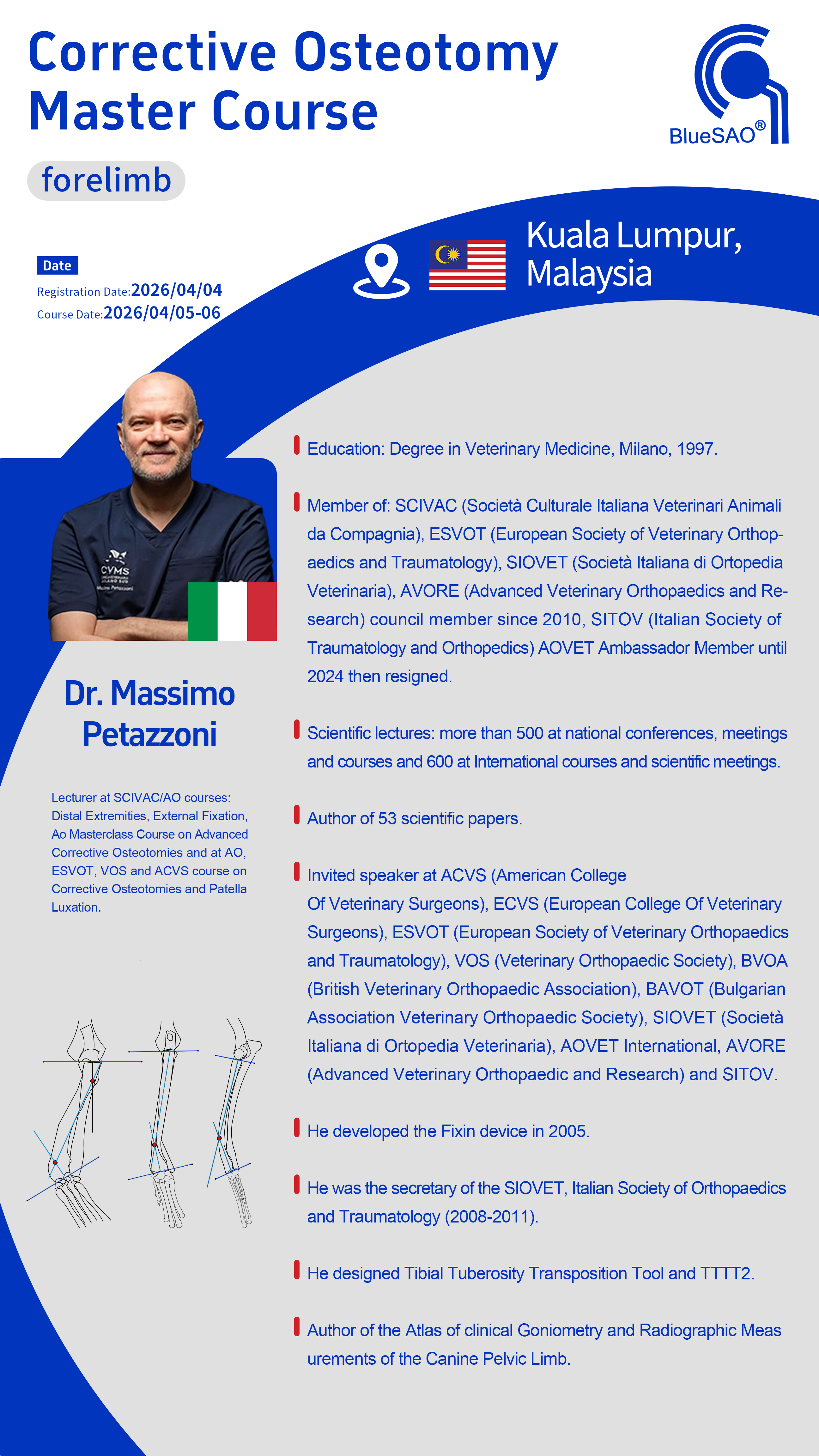 Breaking News: BlueSAO teams up for the first time with the world-renowned veterinary orthopedic master, Dr. Massimo Petazzoni from Italy 🇮🇹! The April Twin-City Masterclass (Kuala Lumpur 🇲🇾, Malaysia / Hefei 🇨🇳, China) is launching with a bang, teaching cutting-edge techniques in deformity correction.