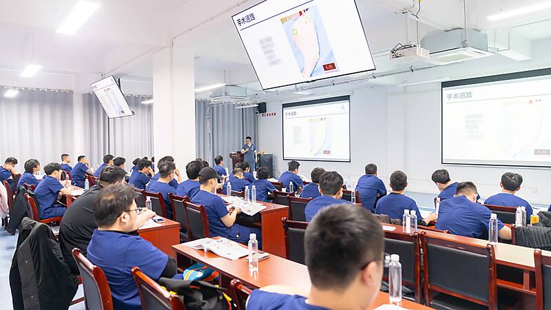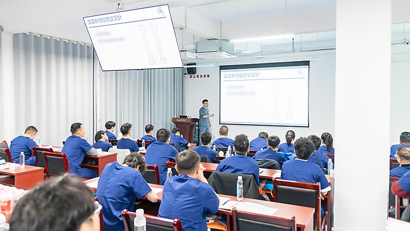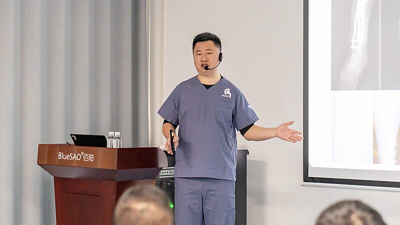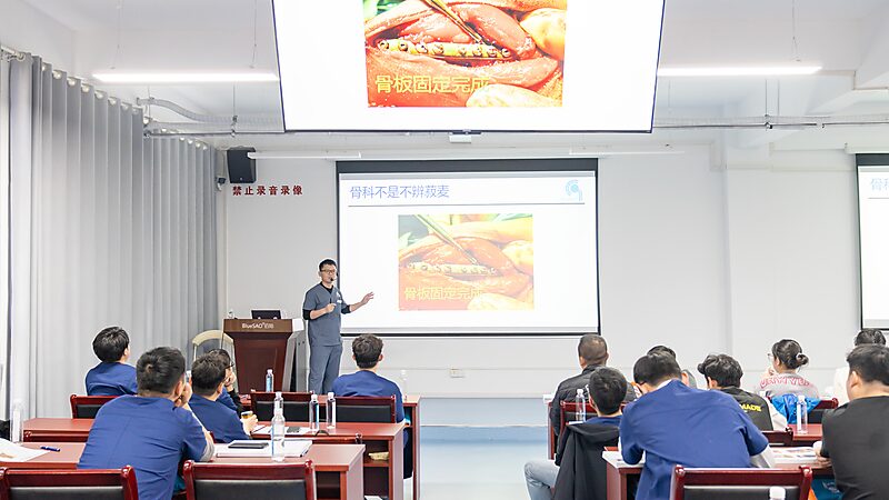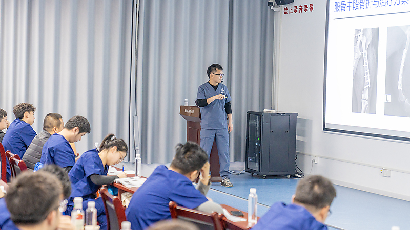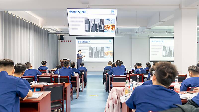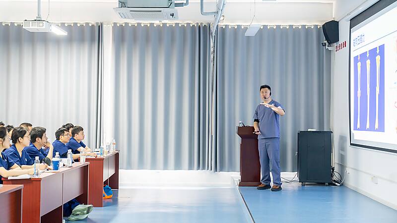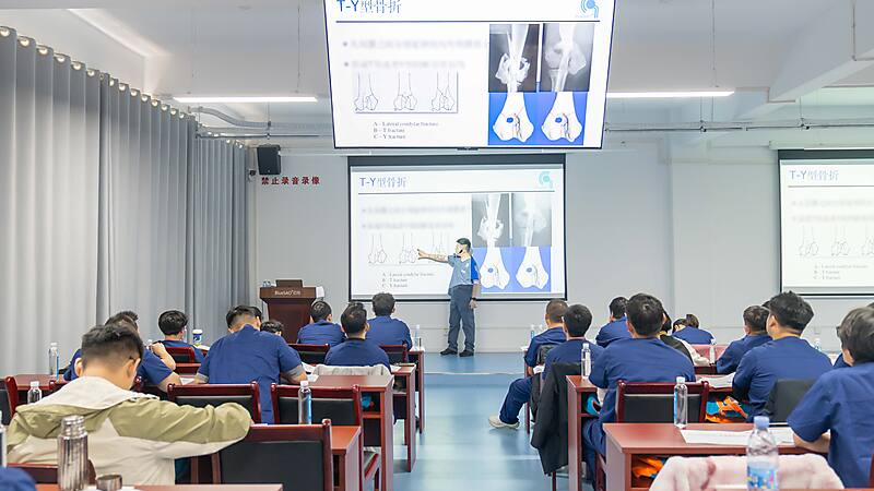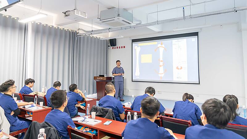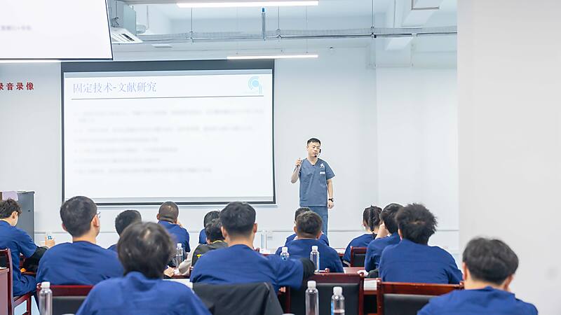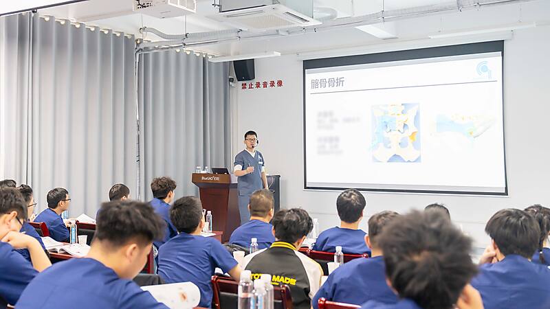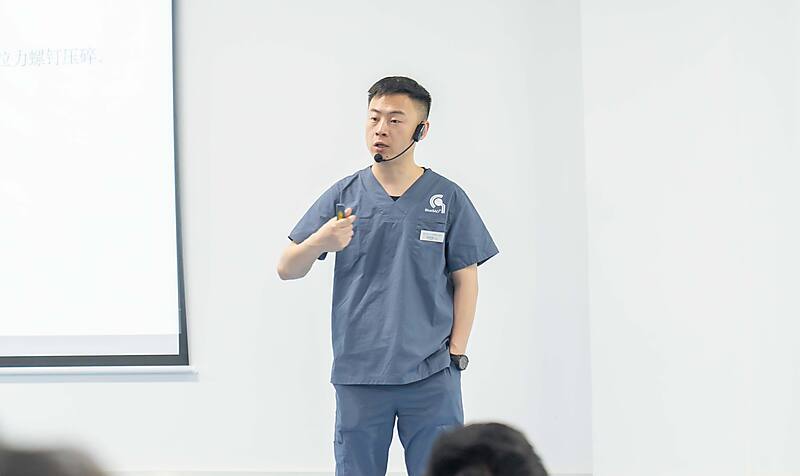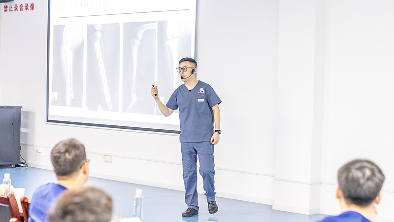 短暂休整后,李永岐老师迅速投入教学,为大家带来 “胫骨骨折的固定方式” 专题深度解析。课堂上,李老师凭借丰富的临床积淀,将大量真实病例与实战经验巧妙融入讲解。他将书本中抽象的理论知识化繁为简,把复杂的固定原理转化为具象易懂的实践要点,层层递进引导学员深入理解课程核心,切实夯实临床应用基础。理论教学环节圆满结束,佰陆讲师团队贾新生、罗宇声、李永岐、陶天亮四位老师无缝衔接,即刻开展实操带教,助力参会医生快速实现知识到临床技能的转化!