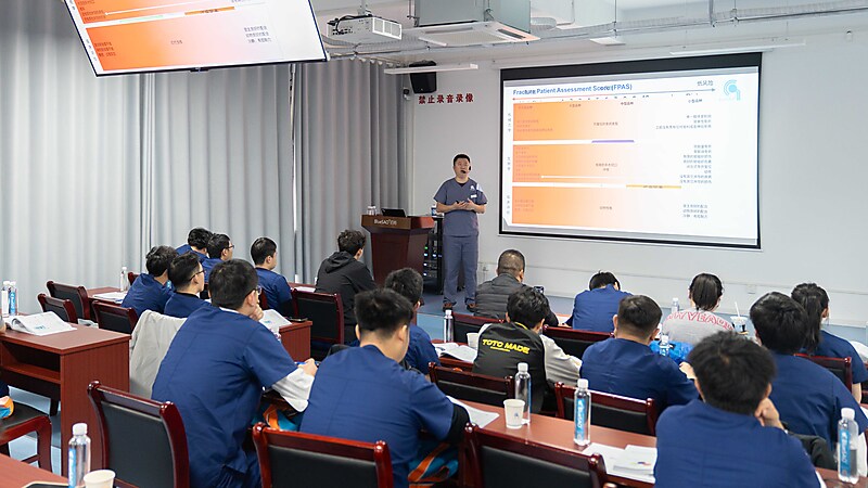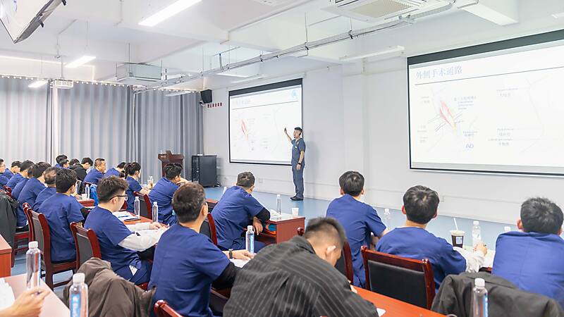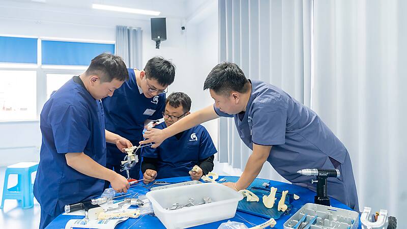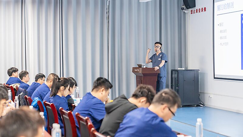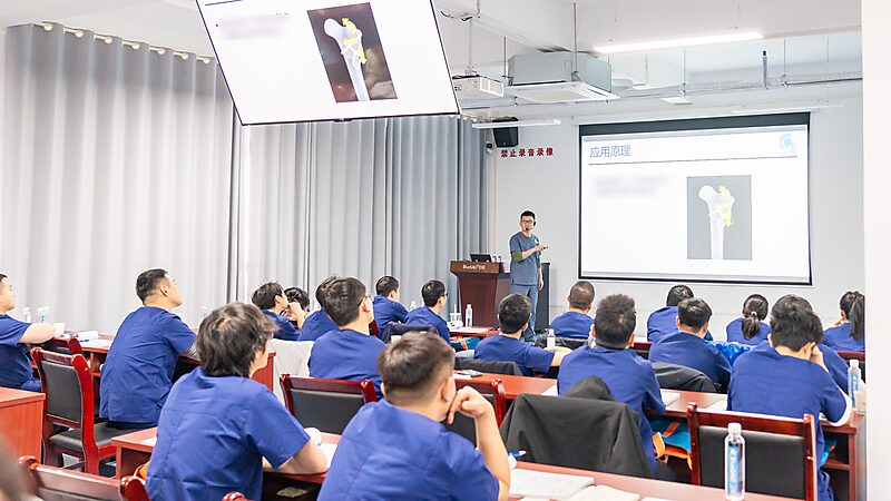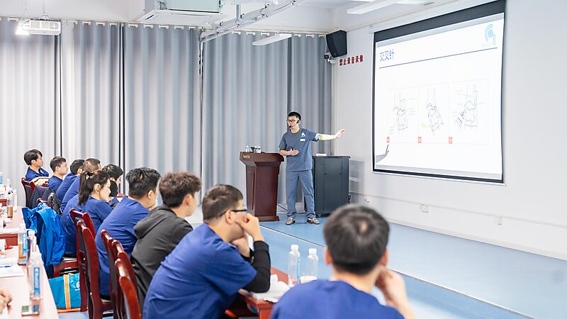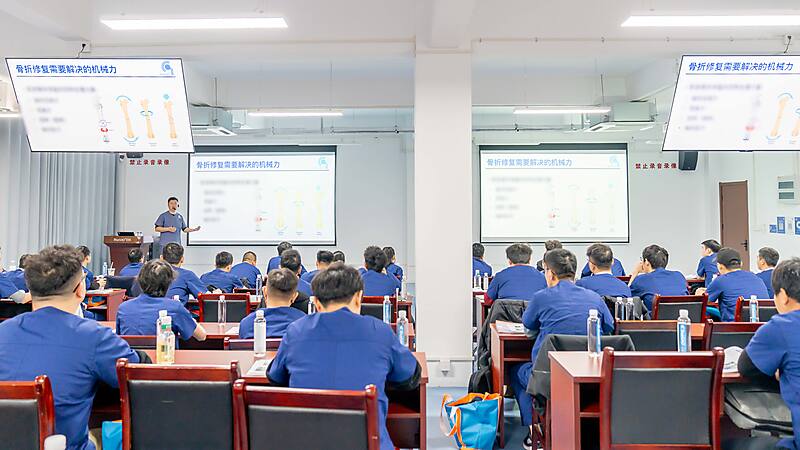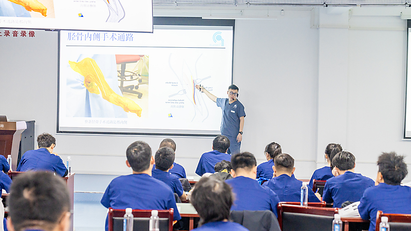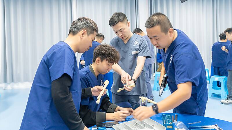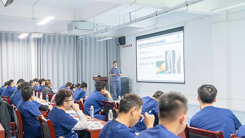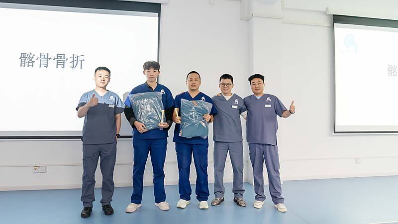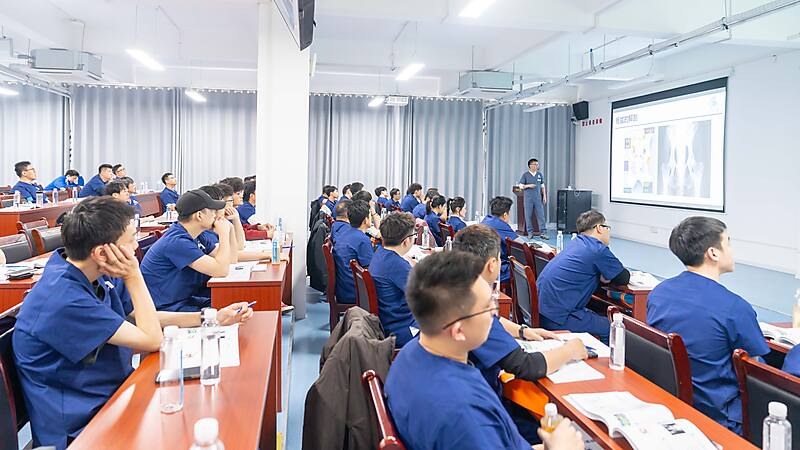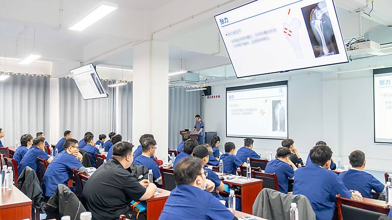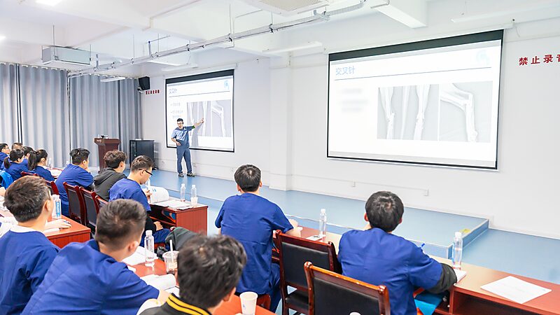 短暂休整后,李永岐老师迅速投入教学,为大家带来 “胫骨骨折的固定方式” 专题深度解析。课堂上,李老师凭借丰富的临床积淀,将大量真实病例与实战经验巧妙融入讲解。他将书本中抽象的理论知识化繁为简,把复杂的固定原理转化为具象易懂的实践要点,层层递进引导学员深入理解课程核心,切实夯实临床应用基础。理论教学环节圆满结束,佰陆讲师团队贾新生、罗宇声、李永岐、陶天亮四位老师无缝衔接,即刻开展实操带教,助力参会医生快速实现知识到临床技能的转化!
