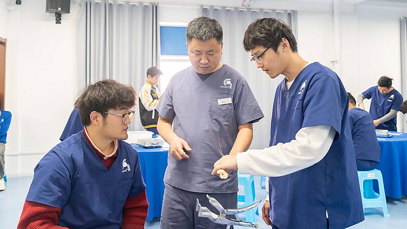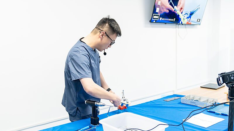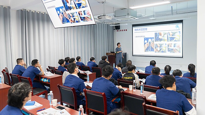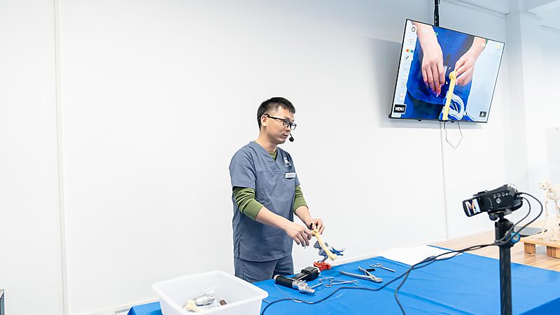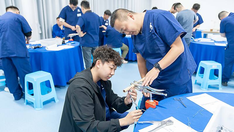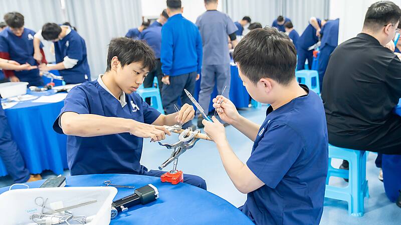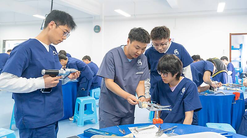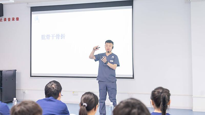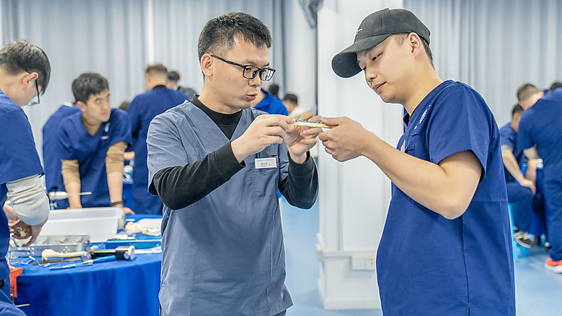 短暂的课间休息结束后,第二节课程正式开始!由年轻帅气的李永岐老师主讲,课程聚焦手术器械,逐一详解骨科手术基础器械的使用技巧与电动工具规范操作。从理论讲解到实操要点全覆盖,助力大家扎实掌握技能,为临床实操打下坚实基础!