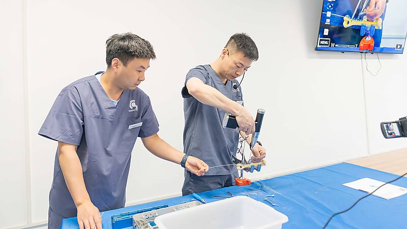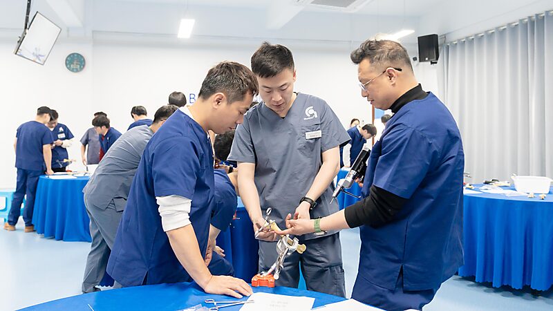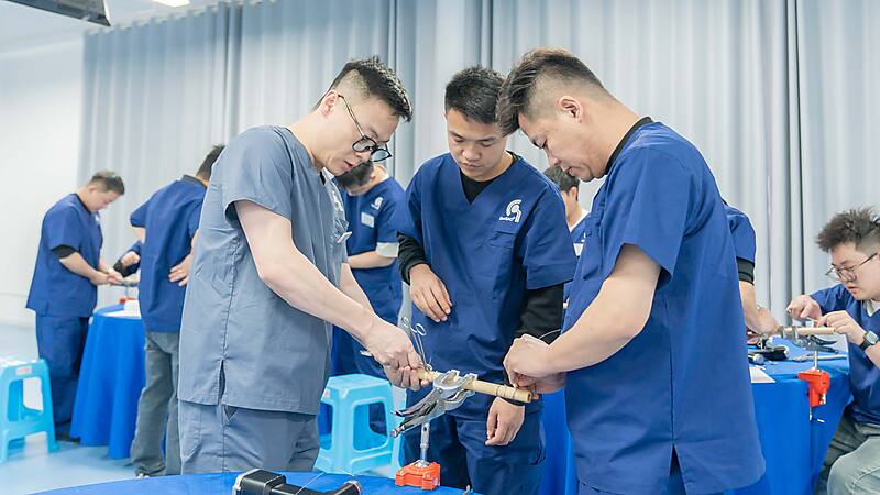 课堂采用「理论精讲 + 实操练习」双轨并行模式,二者相辅相成、有机融合,构建了完整的学习闭环。老师们分步演示手术操作,紧扣骨盆损伤修复核心要点,细致讲解实操关键技巧与注意事项。佰陆讲师团全程驻场一对一指导,针对实操问题第一时间提供专业解答与精准纠正,让每一位医生都能吃透核心知识,熟练掌握实操技能!