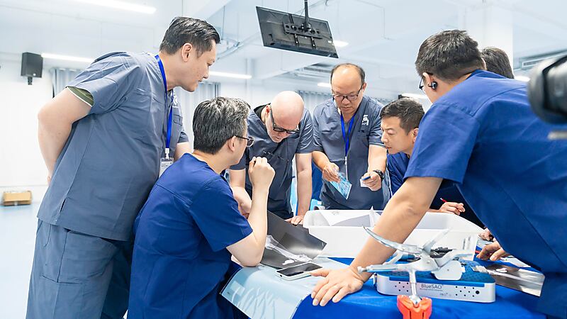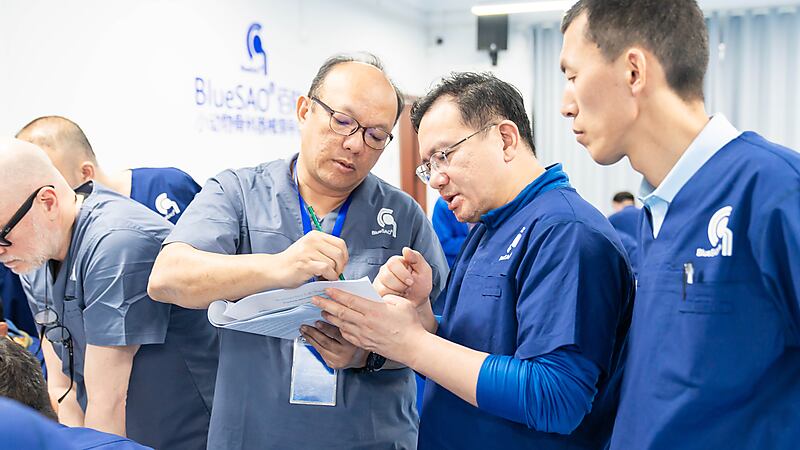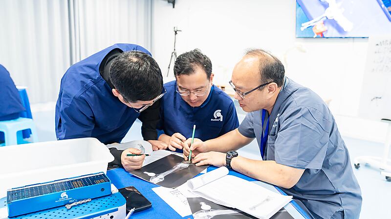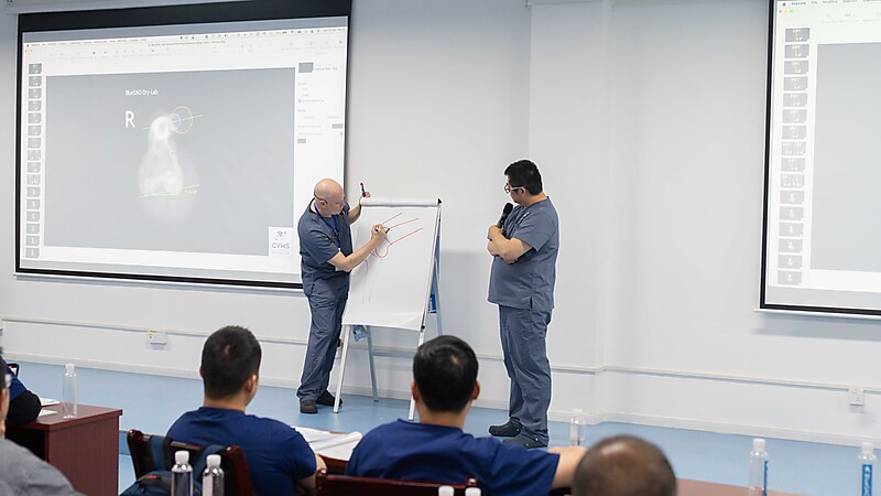 接下来便是手术规划实操课程!手术规划对于高难度手术极为重要,参会医生三人一组,认真规划、分析讨论。来自意大利的Massimo老师和来自中国以及马来西亚的Dr.周珞平、Dr.Kiew、Dr.Lee三位实操带教老师一起,为大家进行细致指导!
