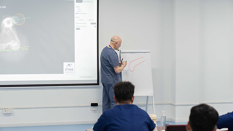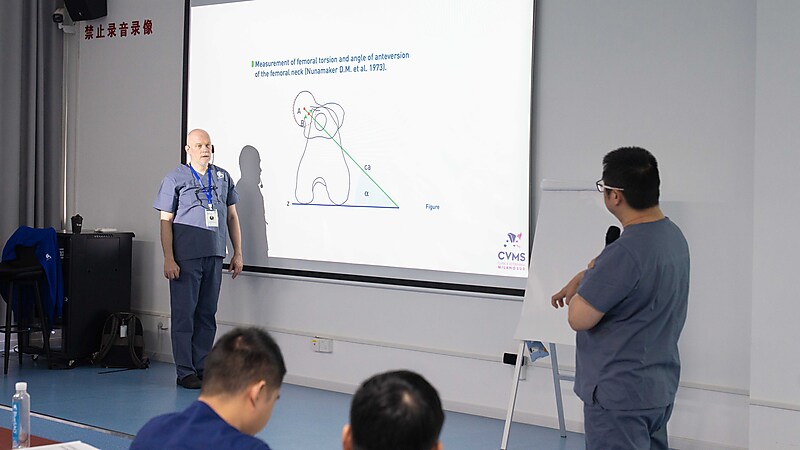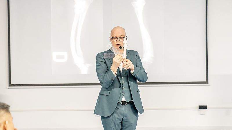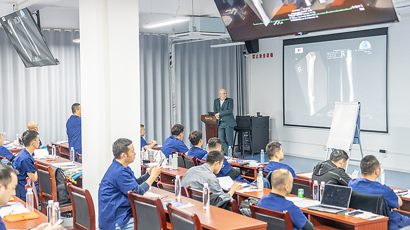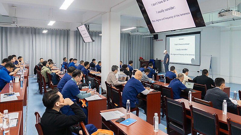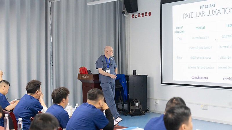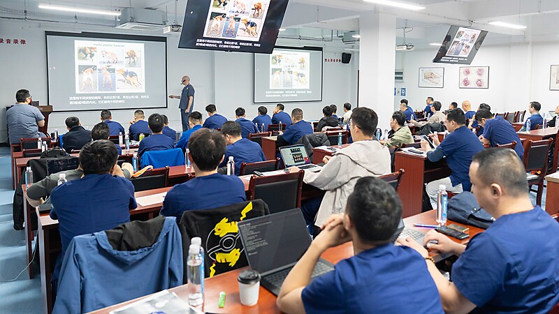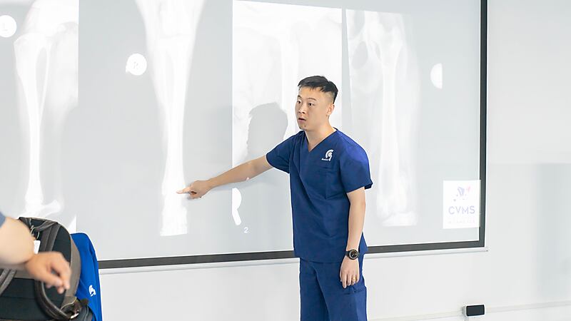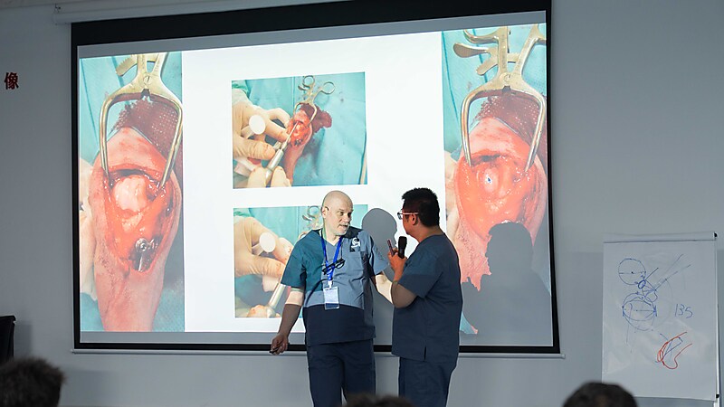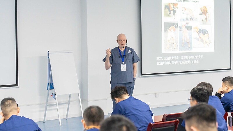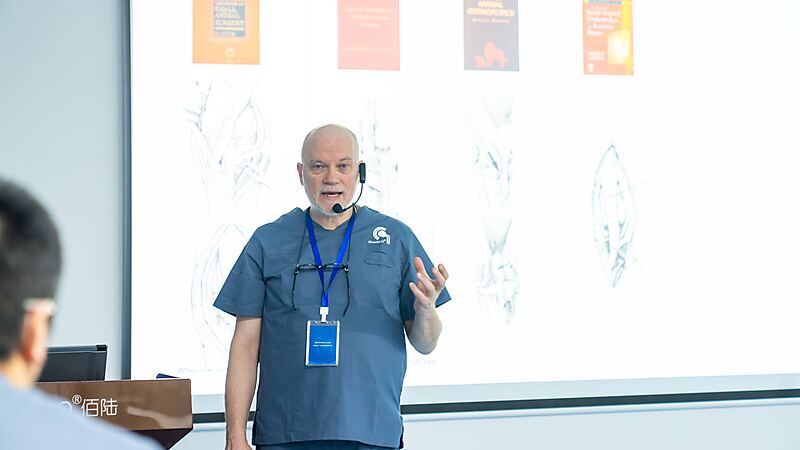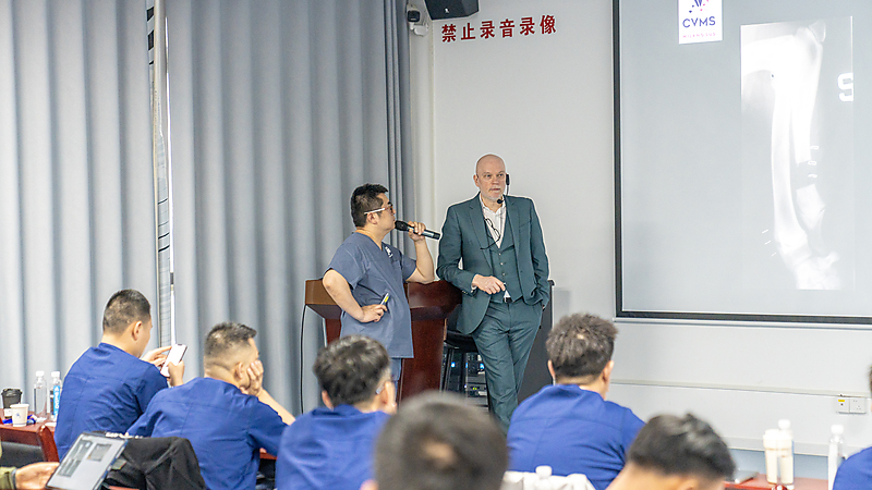 随后,本期大师班课程正式开启,意大利兽医骨科权威专家 Dr. Massimo Petazzoni 亲临授课,凭借深厚的临床经验与精湛的专业功底,对核心知识点层层剖析,干货满满、直击临床要点。Dr. Massimo 授课风趣幽默,将复杂晦涩的骨科知识化繁为简,让技术难点在轻松氛围中迎刃而解。课堂上学员积极互动、踊跃研讨,不仅深化了畸形矫正技术的理解,更收获了珍贵的同行情谊,满载而归。特别感谢来自中国上海的 Dr. 周珞平全程专业精准翻译,搭建起高效沟通桥梁,为课程顺利开展与学员学习体验保驾护航。