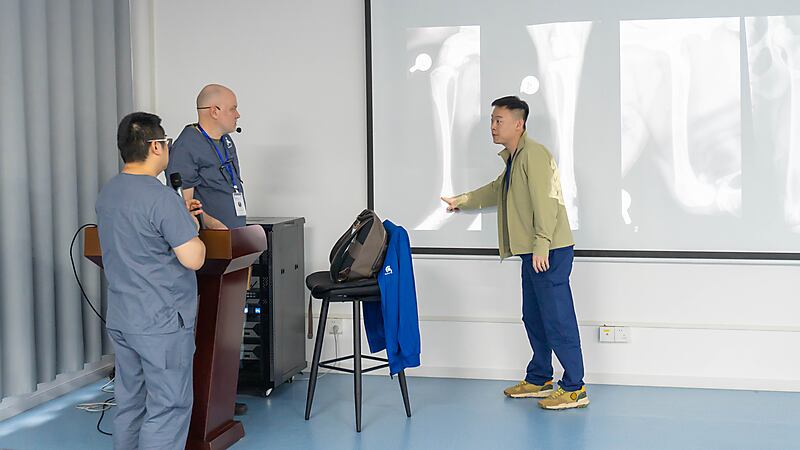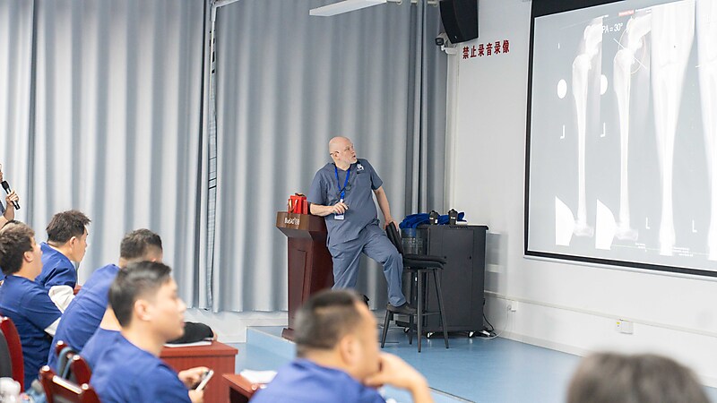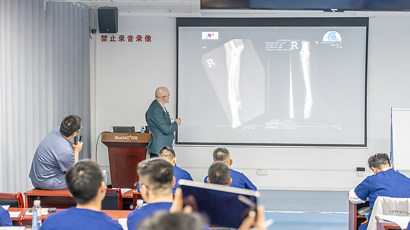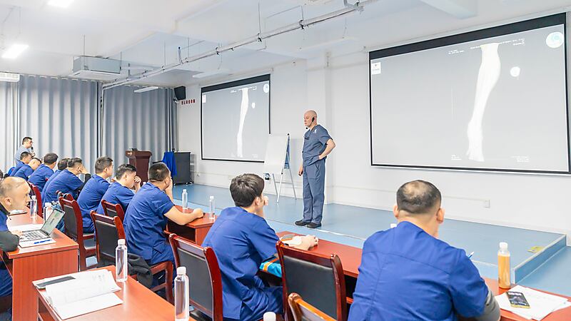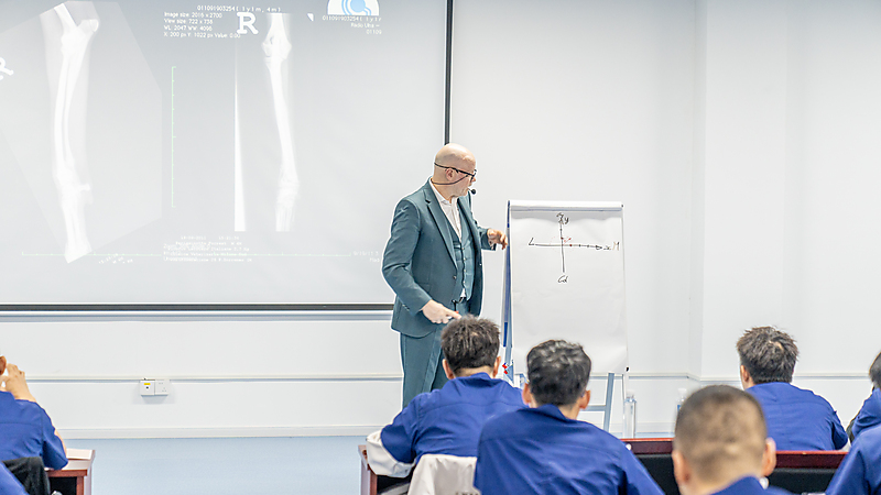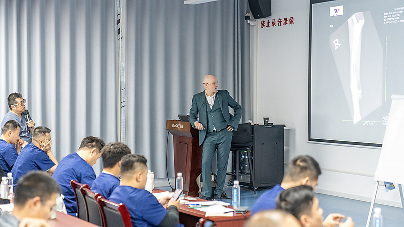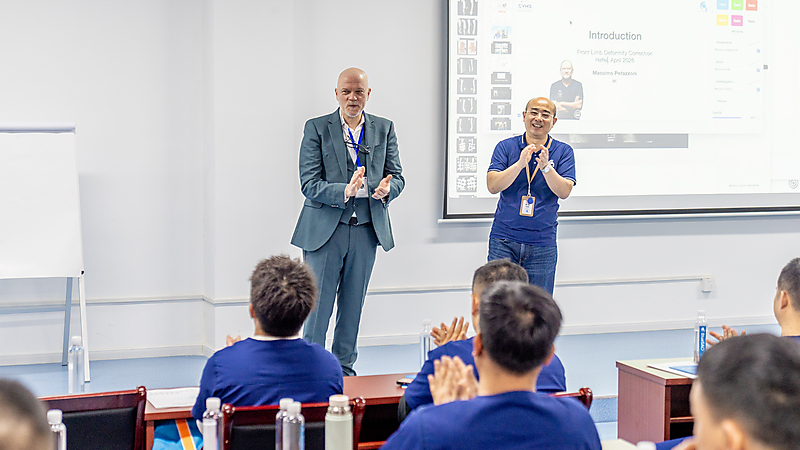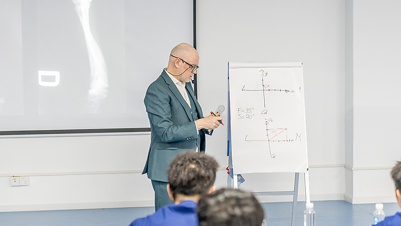 本节课程尾声,参会医生们踊跃提问、积极交流,Massimo 老师耐心倾听、逐一详尽分析解答,现场研讨氛围热烈浓厚。即便面对高难度的骨科专业内容,Massimo 老师依旧以一贯风趣幽默的授课风格,让严谨的课堂充满轻松与欢乐。深厚的专业造诣、极具魅力的授课方式,让在场各国参会医生收获满满、由衷敬佩,也让这场跨国学术交流更具温度与力量。