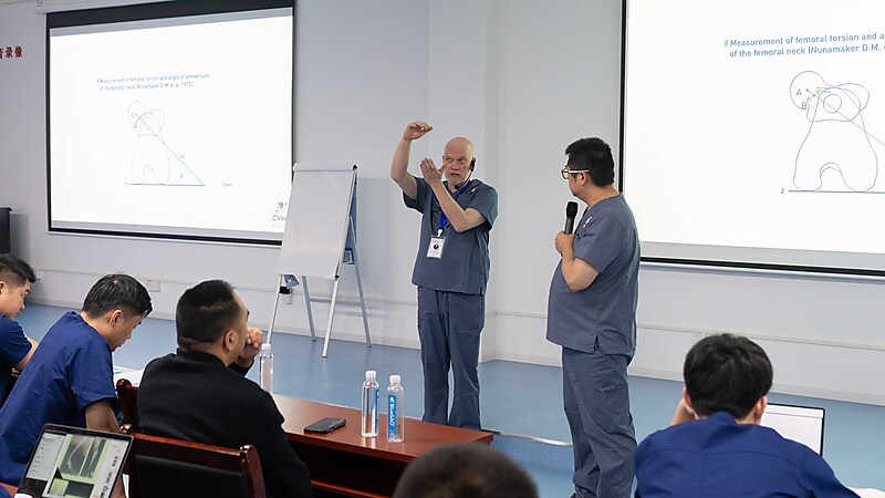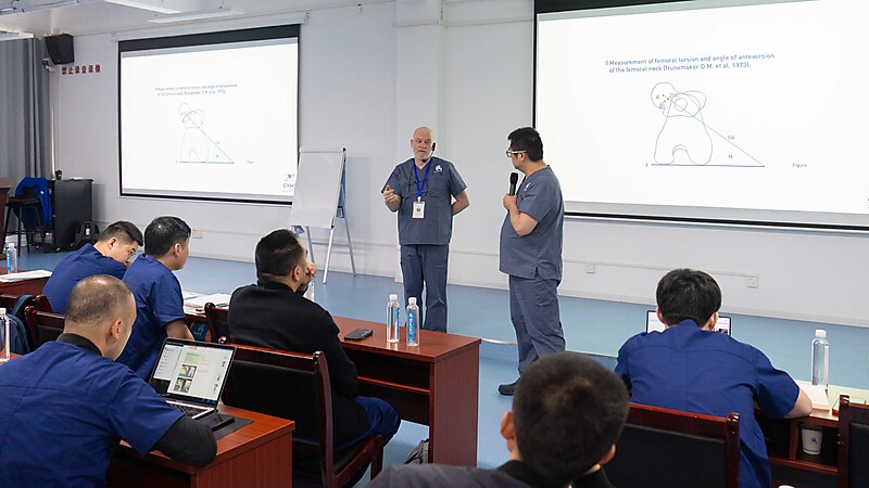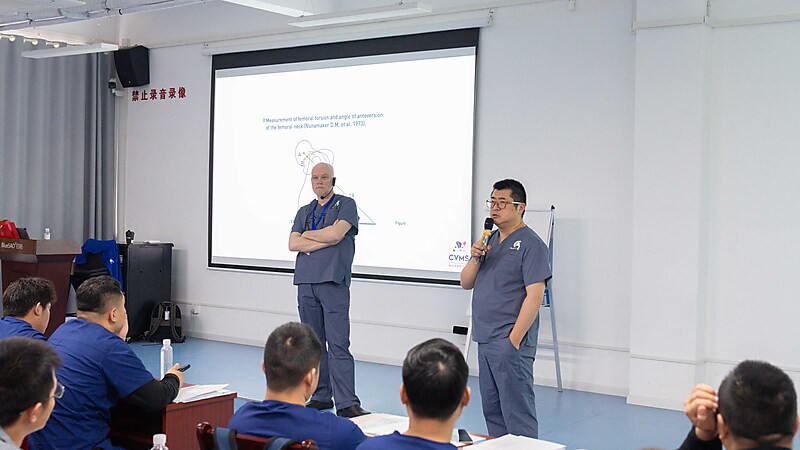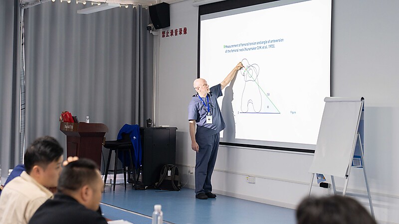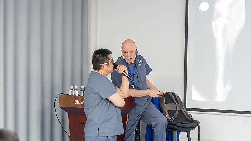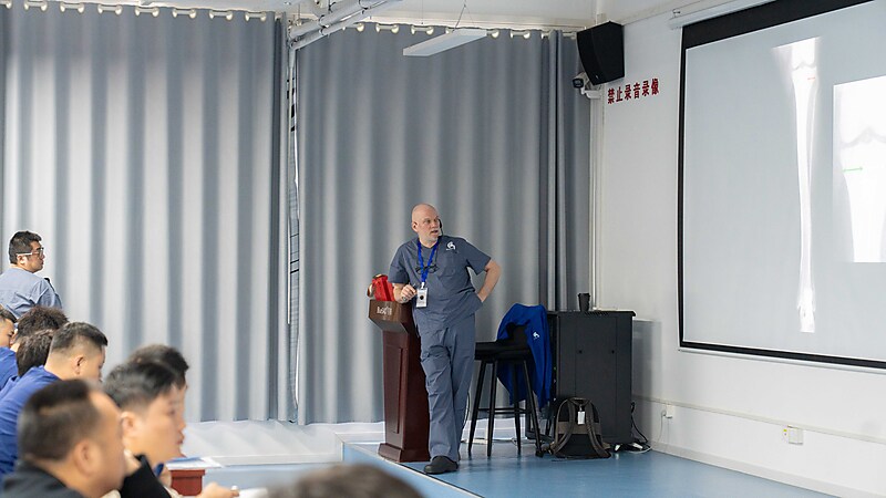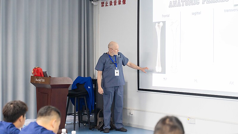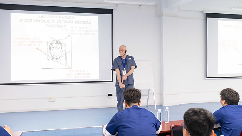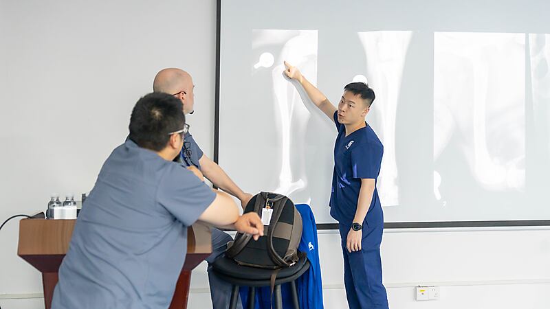 本节课程尾声,参会医生们踊跃提问、积极交流,Massimo 老师耐心倾听、逐一详尽分析解答,现场研讨氛围热烈浓厚。即便面对高难度的骨科专业内容,Massimo 老师依旧以一贯风趣幽默的授课风格,让严谨的课堂充满轻松与欢乐。深厚的专业造诣、极具魅力的授课方式,让在场各国参会医生收获满满、由衷敬佩,也让这场跨国学术交流更具温度与力量。