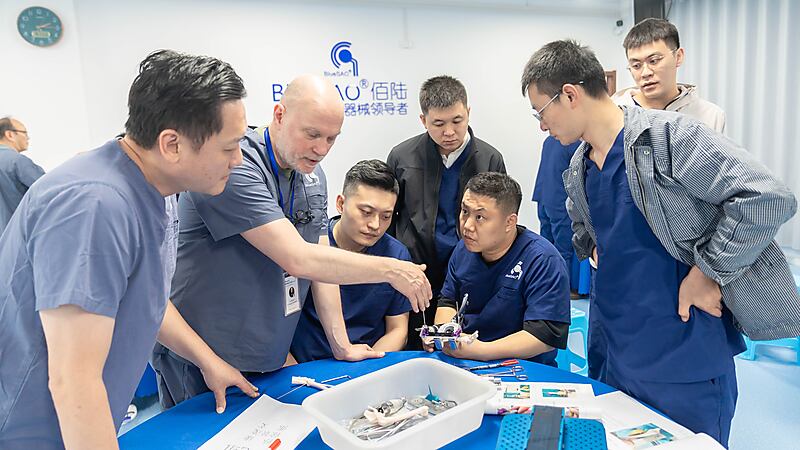 大家求知若渴、专注投入,一上午的时光转瞬即逝,课程也在不知不觉中告一段落。午间时分,参会医生们依旧热情不减,纷纷聚集在佰陆展台前交流心得、热烈探讨。