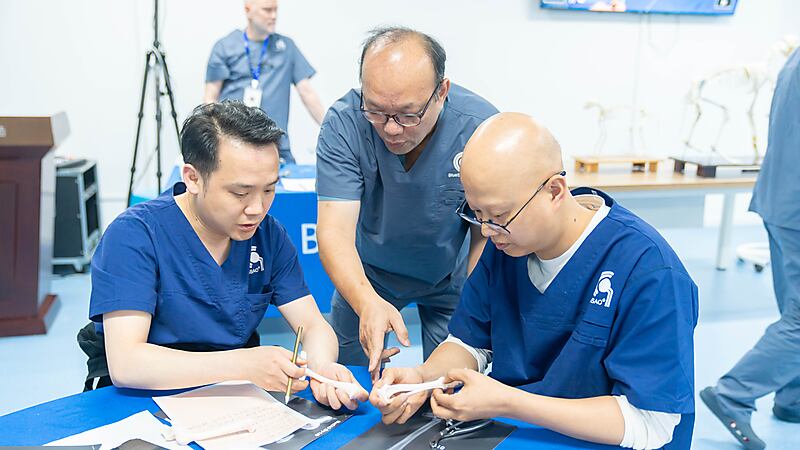 理论课程告一段落,紧接着便进入后肢畸形矫正模型实操环节。扎实的理论只有落地到真实操作,才能真正转化为临床能力。通过亲手实操、反复打磨,让知识从纸面走向实践,在动手过程中夯实技术、强化理解,真正做到学用结合、学以致用。学员们在模型上反复练习、精细操作,将课堂上的知识点逐一落地,在动手实践中查漏补缺、巩固技巧。每一次调整、每一次固定,都是对临床思路的强化;每一次实操演练,都是为日后面对真实病例积累底气。只有把操作练熟、练精,才能在临床中更从容、更精准,为小动物健康保驾护航。