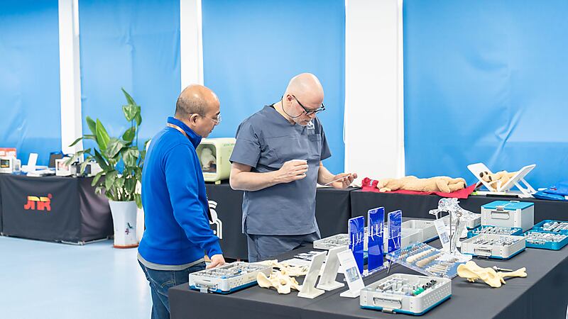 课间休息,佰陆产品展示区瞬间成为全场焦点!参会医生们纷纷驻足围聚,围绕产品设计理念、工艺细节与临床适配性热烈交流。大家对佰陆器械精湛的制造工艺、稳定可靠的品质,以及贴合临床需求的原创设计赞不绝口。课程继续进行,本节聚焦前肢桡尺骨畸形矫正。大师果然名不虚传,再深奥的理论,都能用浅显易懂的方式讲解透彻,让全场医生收获满满、受益匪浅!