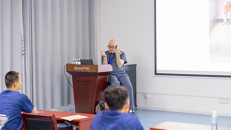 今日,为期四天的第214期BlueSAO佰陆「Massimo 畸形矫正大师班」正式拉开帷幕!来自世界各地的47位兽医同仁齐聚佰陆国内学习基地,共研畸形矫正核心技术,共赴一场专业深耕、精进提升的学术盛宴。开课伊始,佰陆CEO张骊峰先生上台致辞,详细介绍本次主讲老师Dr. Massimo Petazzoni的简历,并对远道而来的各位医师表示热烈欢迎。