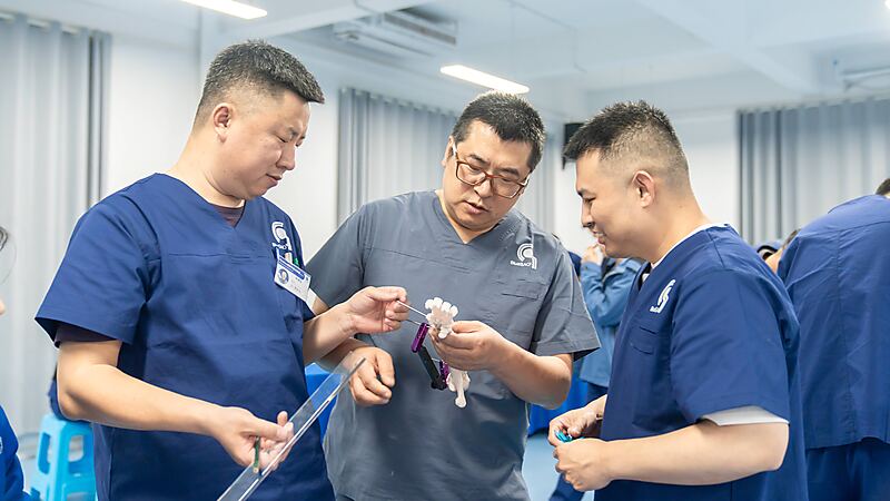实操结束医生们积极展示自己的学习成果