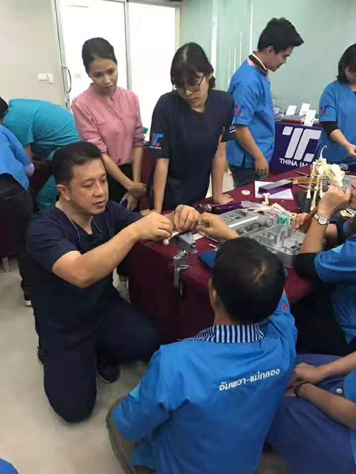 There are still four groups of students working overtime to practice the workshop exercises on that day. The teachers of the first THINA IE-EX & BlueSAO (Bangkok) orthopedic training class are working hard!