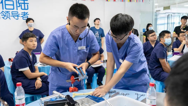 随后开始环扎钢丝以及螺钉技术实操,实操过程老师全程陪同,指导讲解每一步细节。