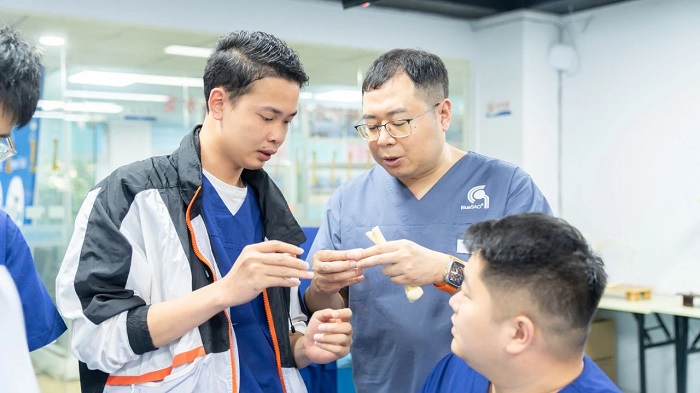 然后紧接着进行桡骨模型实操,实操中准备了直板和T型骨板,让学员熟练掌握不同的固定方式,多一种临床方案选择!
