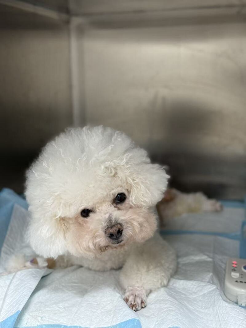 Bichon Frise, nicknamed Tangyuan, 8 years old, male, weighing 4 kilograms.