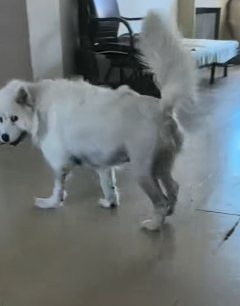 Samoyed, 8 years old, female (unneutered), weighing 25Kg.