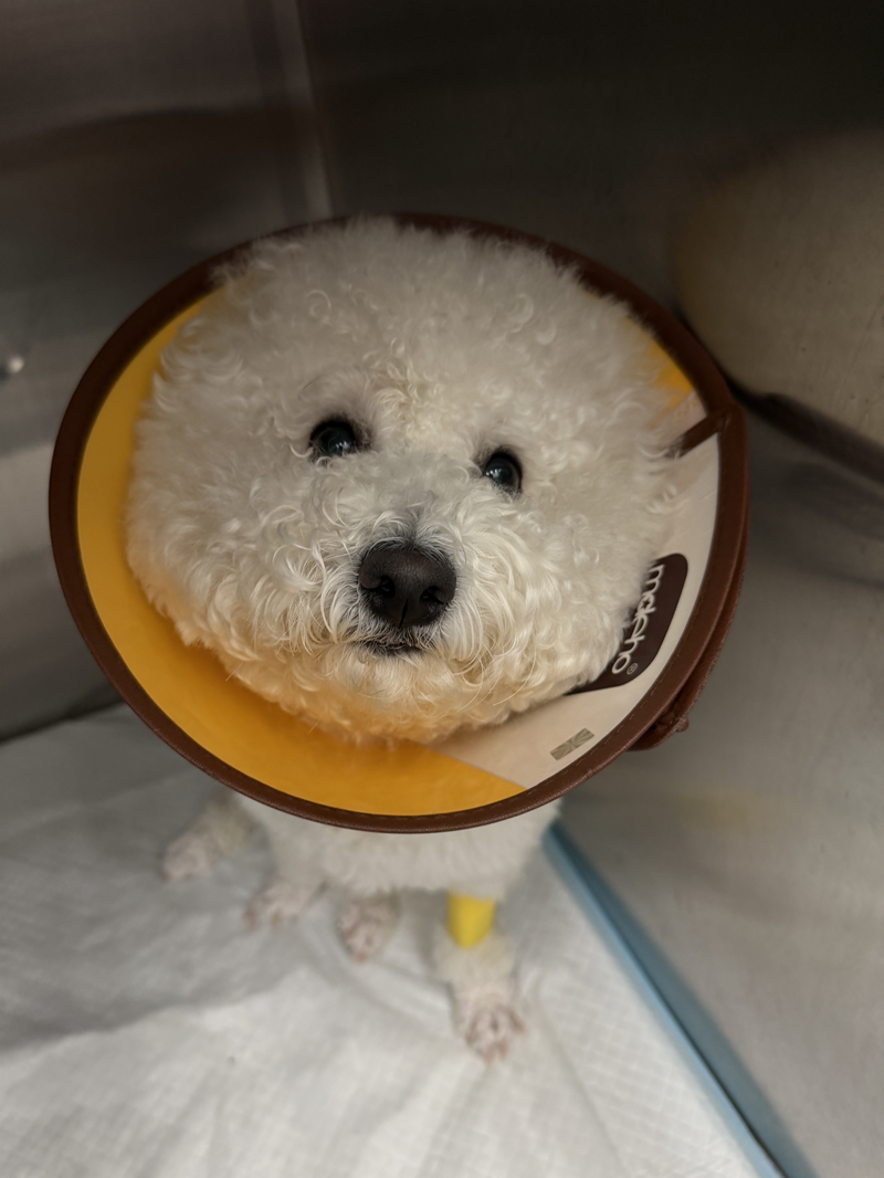 ·Bichon Frise, nickname: Snowball, 3 years old, male, weighing 7.5Kg. Snowball's excessive exercise at home led to limping in her right hind limb. After medical examination, she was diagnosed with a torn anterior cruciate ligament and joint effusion, and it was decided to undergo TPLO surgery for treatment. Before the operation, precise surgical planning was performed using the BlueSAOiBlueVet software, and the drawer test was positive. During the operation, internal fixation was carried out using the BlueSAO Bailu TPLO-5.5mm R pure titanium locking bone plate. The operation was successfully completed. I hope you will recover soon. Special thanks to Dr. Yu Shuiquan from a pet hospital in Dalian for sharing the clinical case of the BlueSAO TPLO locking bone plate system!
