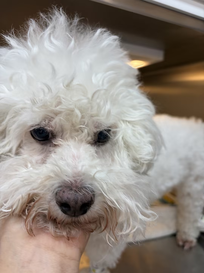Bichon Frise, 9 years old, male, weighs 7 kilograms.