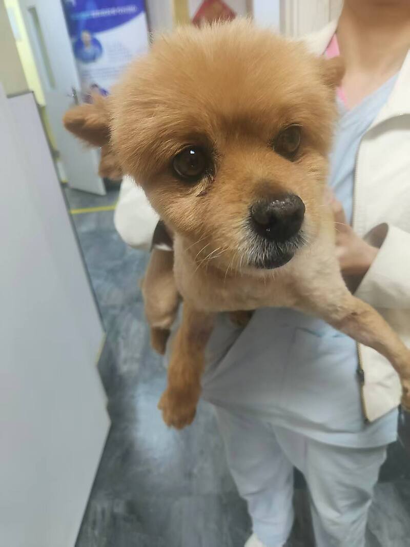 Pomeranian, 5 years old, male, weighing 7.65 kilograms.