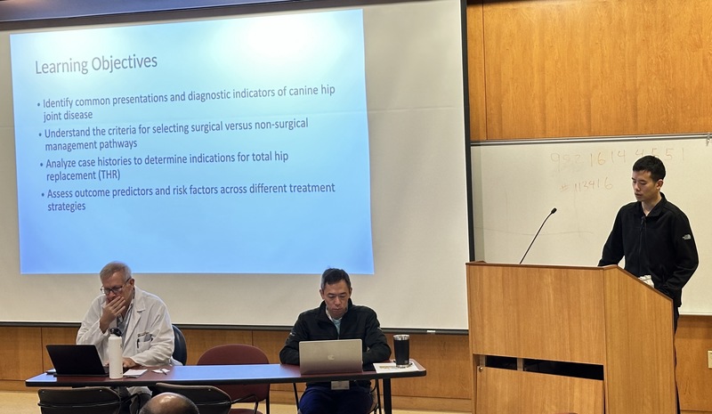 在每位参会者简短的自我介绍之后,今天上午的理论课正式开始!Prof. Denis、Prof. Chou Po-Yen和 Dr.Lu Ming三位UC Davis兽医学院的讲师给大家带来了整个一上午的理论课。课程讲得非常细致,以大量临床病例让所有参会医生对髋关节置换的原理、诊断和临床手术规范及技巧有了极为深刻的认识!