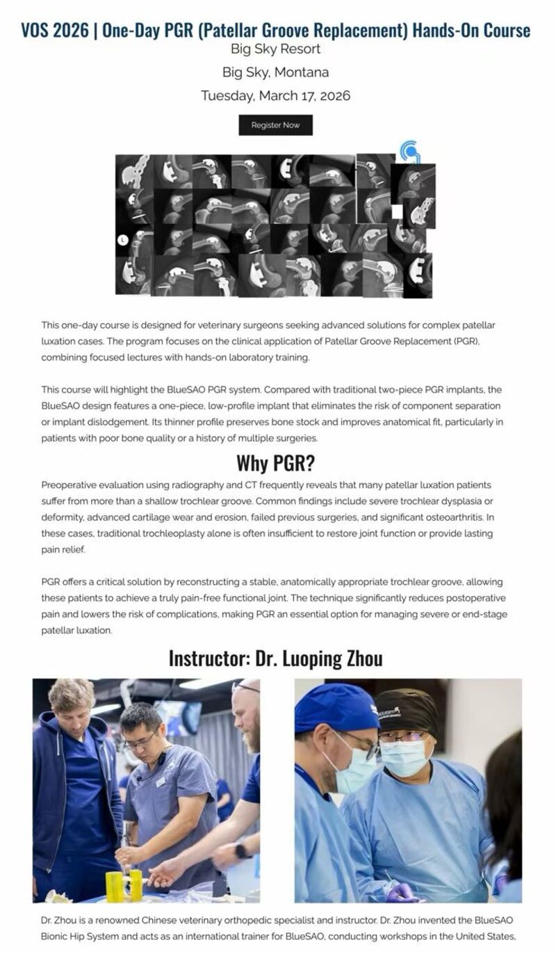 这不仅是对周老师专业成就的高度认可,更是中国兽医骨科迈向国际舞台的重要一步!与此同时,BlueSAO佰陆也将在大会期间,同步举办生物型PGR实操培训会。💡