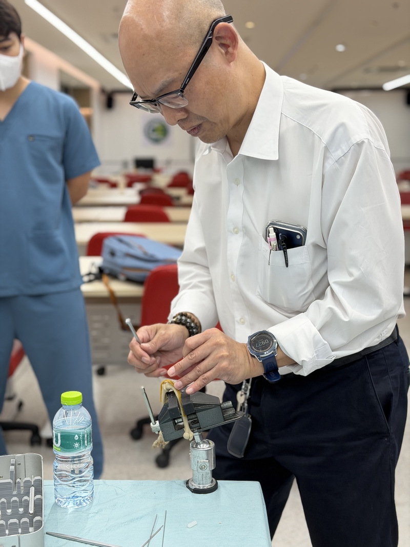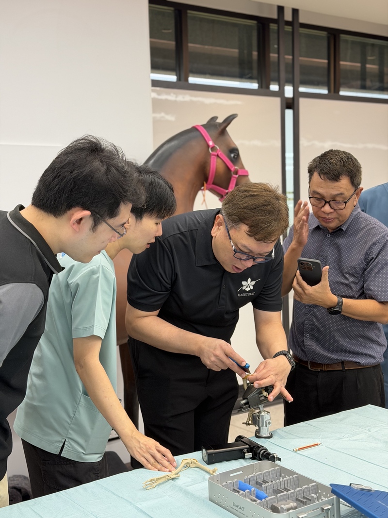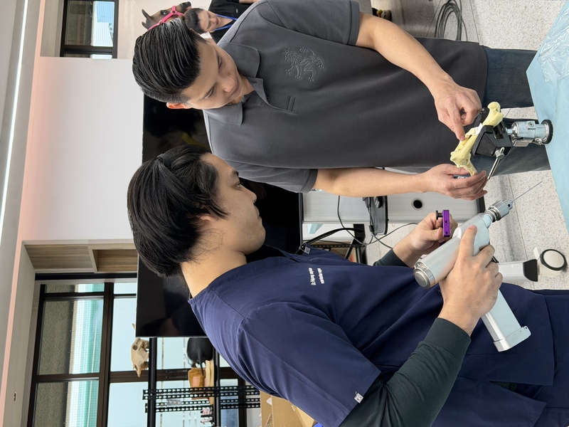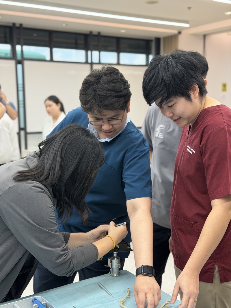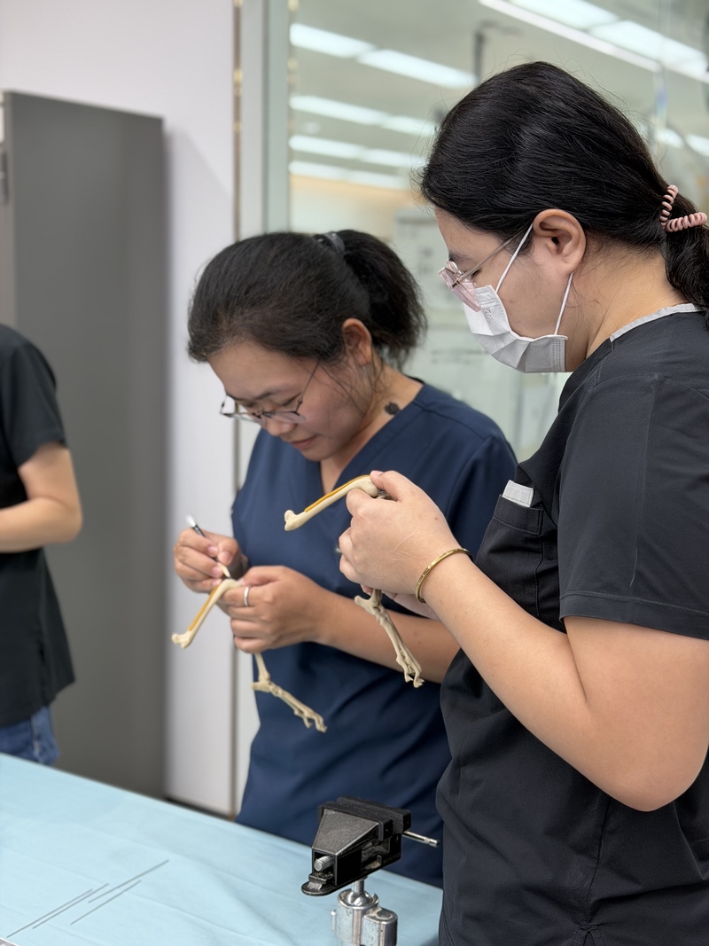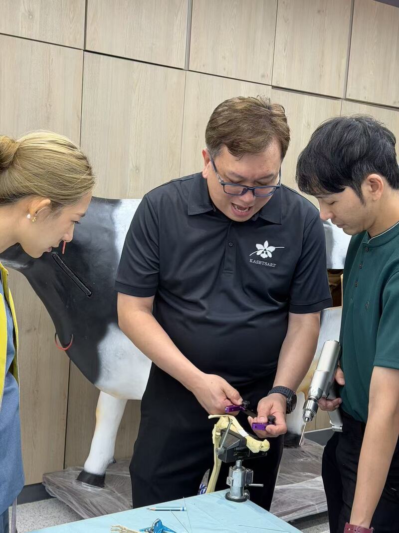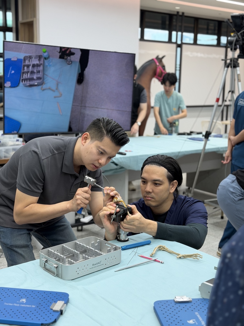 演示环节结束后,参会兽医迅速分组投入实操,全程热情饱满、专注细节,珍惜技能精进机会。Dr. Chaiyakorn Thitiyanaporn与Dr. Sirun Tuekum两位讲师全程关注,精准点拨实操难点、耐心纠正操作偏差,使每一位参训的医生熟练掌握实操要点、提升手术技能。