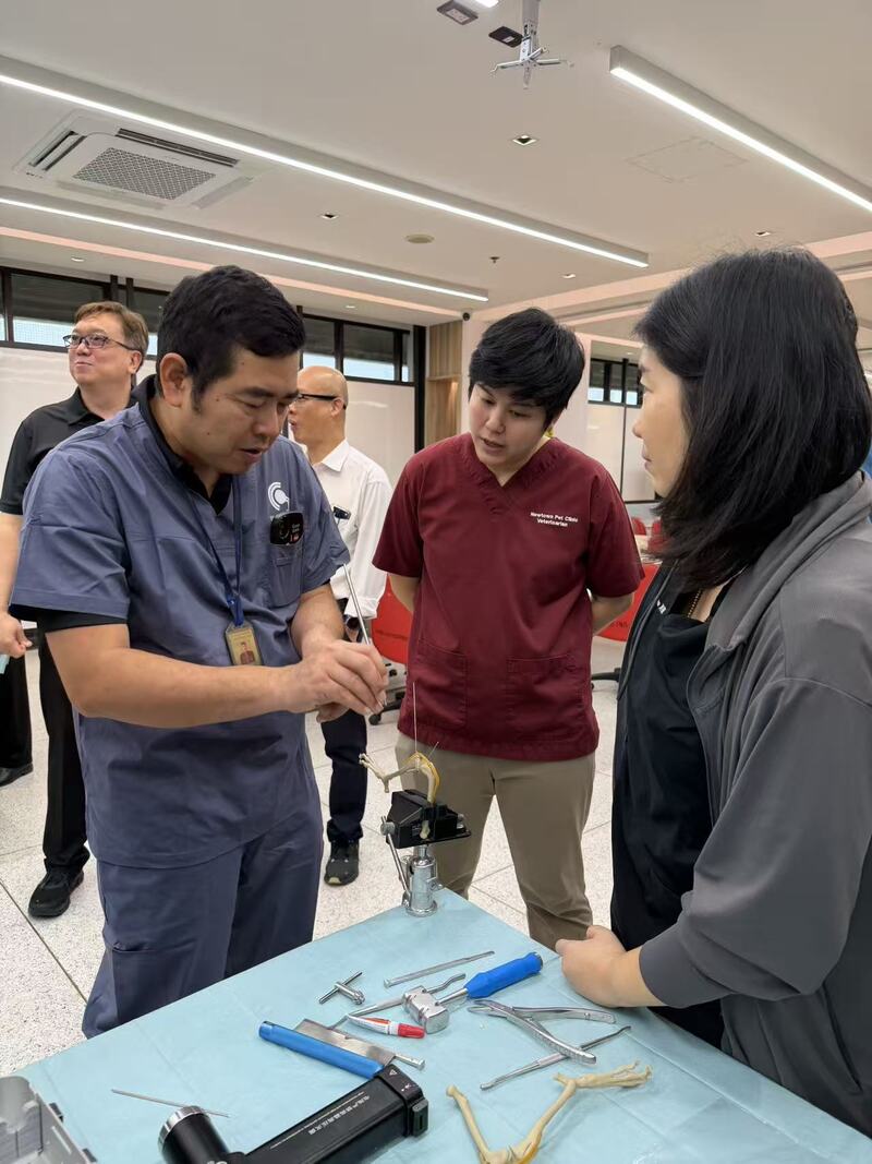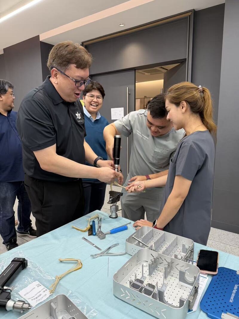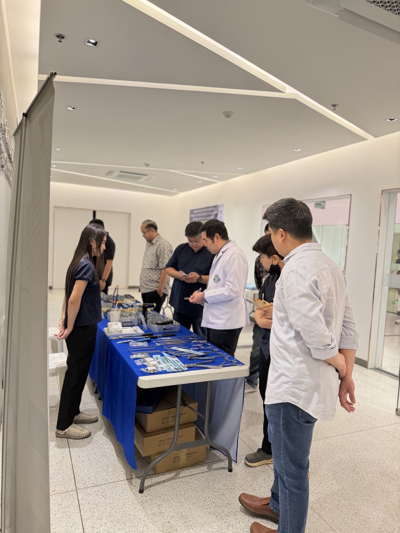 课间休息一到,佰陆产品展示区瞬间成为全场焦点!泰国参会的医生们纷纷驻足围聚,围绕产品设计理念、工艺细节与临床适配性热烈交流,对佰陆器械精湛的制造工艺、稳定可靠的卓越品质,以及贴合临床需求的原创设计赞不绝口!