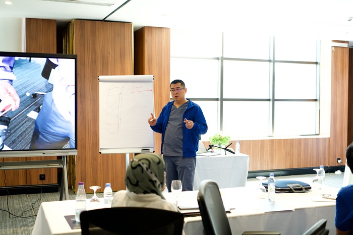 在胫骨骨折实操结束后,来自马来西亚的Dr.Kiew和来自中国的Dr.周珞平,