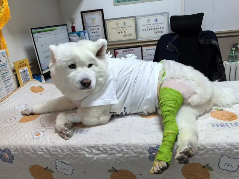 萨摩犬,昵称:雪球,7岁,雄性,体重25Kg。