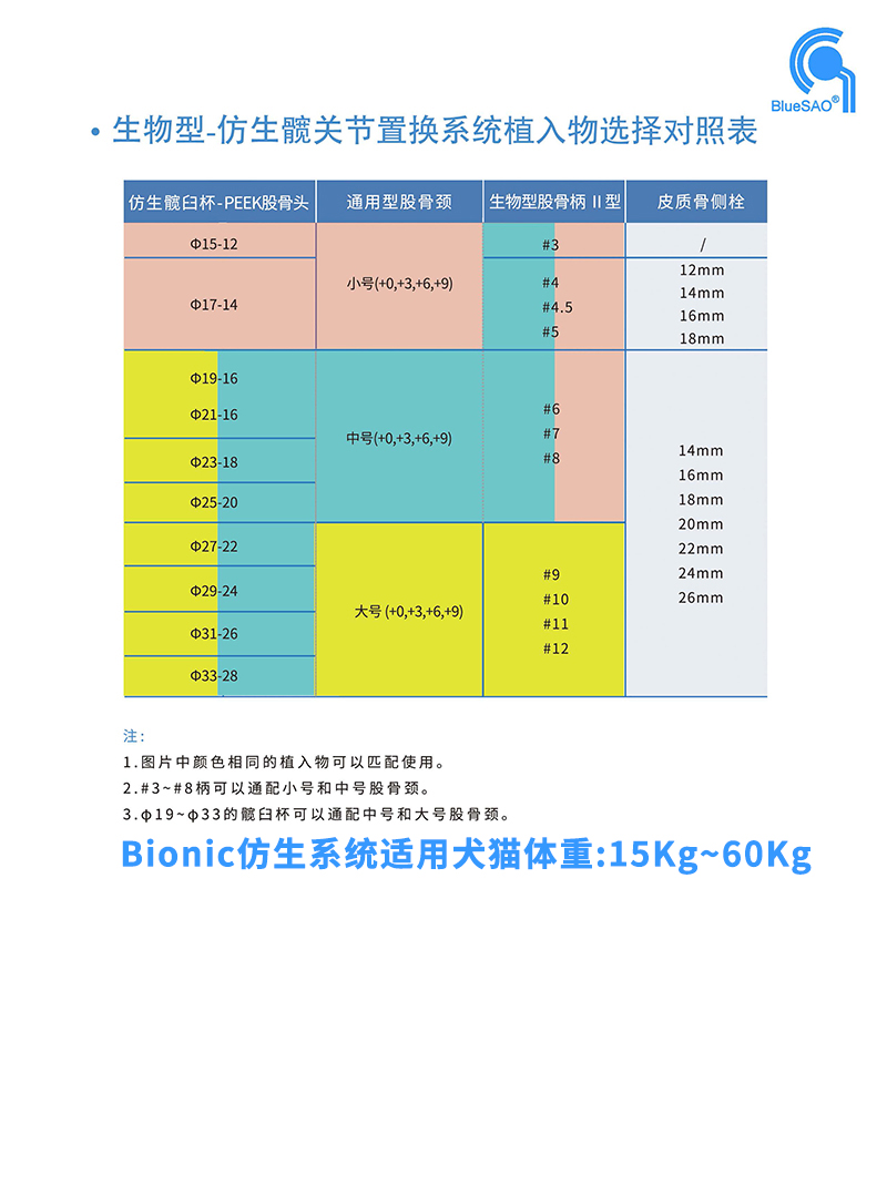 Bionic仿生系统适用犬猫体重:15Kg ~ 60Kg