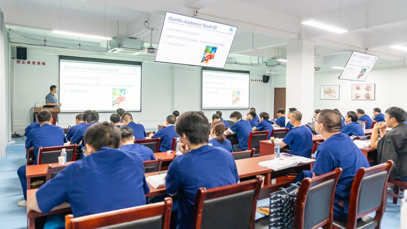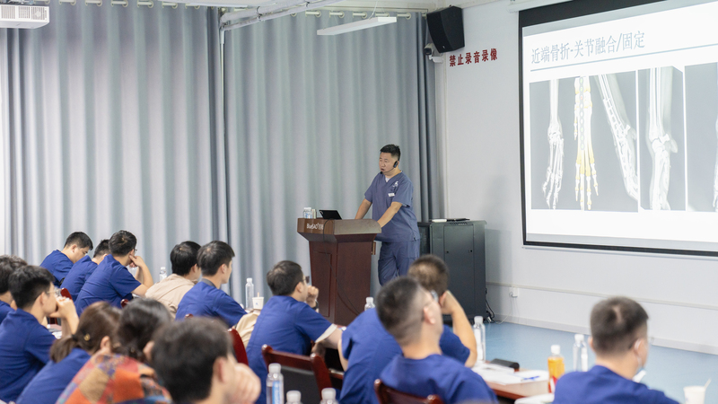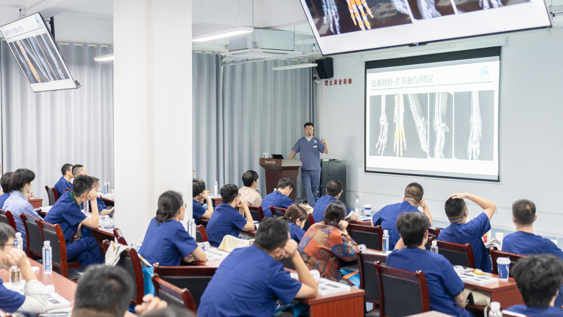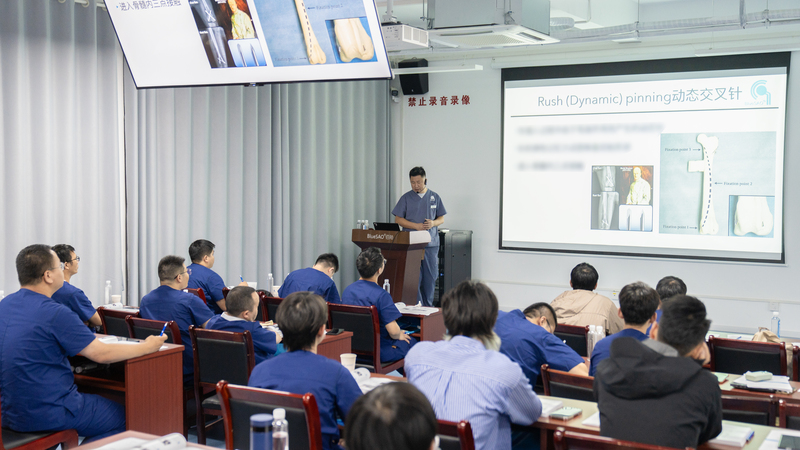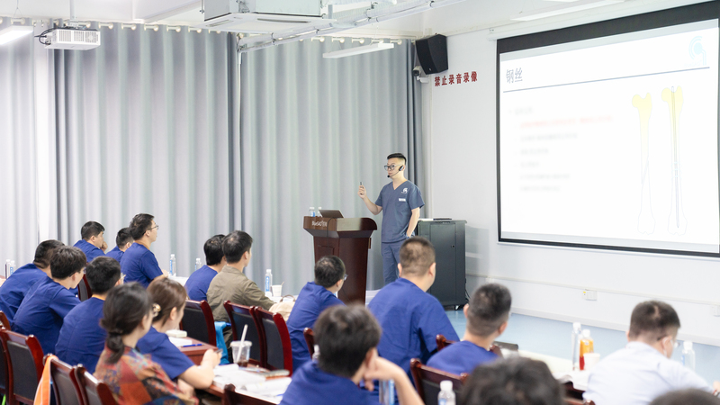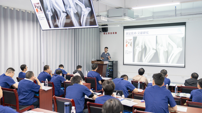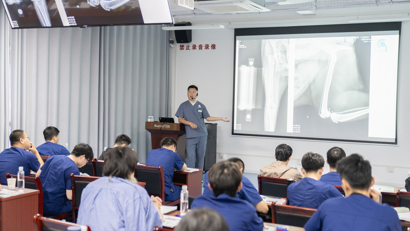 每节课程实现从基础理论到实战练习的无缝切换与层层深入。下午环节,邵志伟老师以真实临床病例为切入点,直击临床核心,系统剖析髓内针与环扎钢丝在不同骨折场景下的应用。课程涵盖从适应症判断、操作细节、并发症预防到术式优化的全流程,旨在强力提升医生的实战能力,让理论扎实落地于临床。