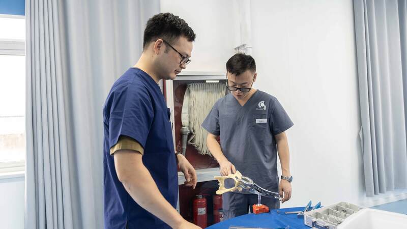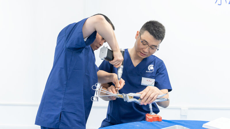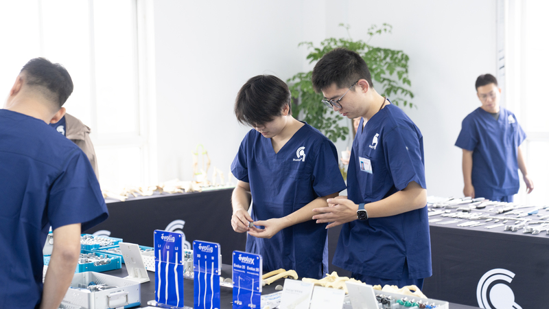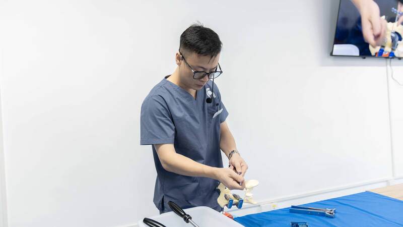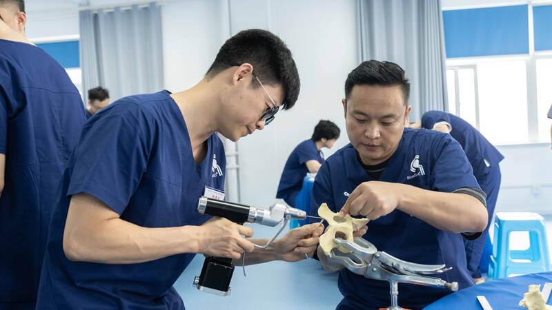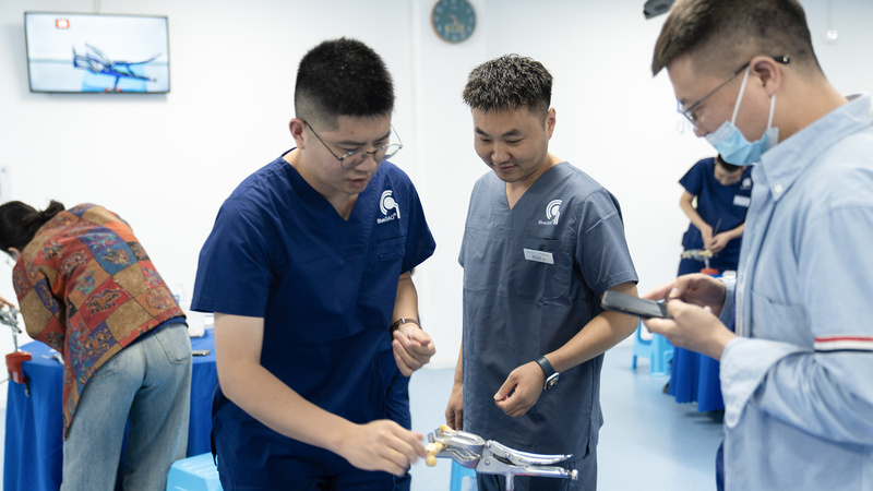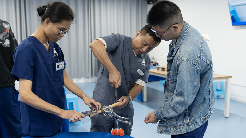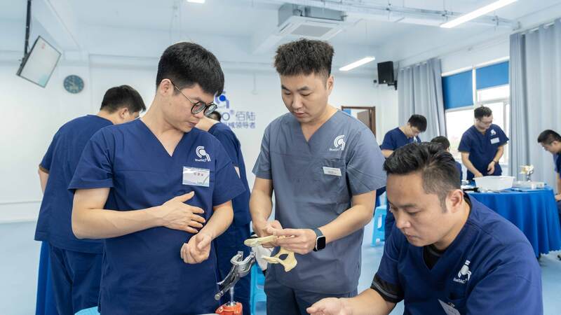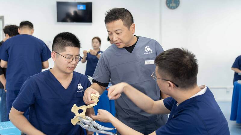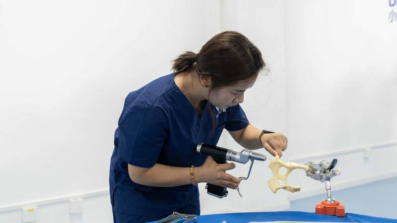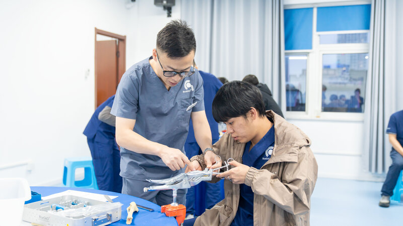在骨盆固定实操练习环节,每位医生依旧全神贯注、一丝不苟,每一个步骤都力求精准、规范到位。佰陆讲师团队全程驻场指导,凭借扎实的专业功底与丰富的临床经验,为医生们提供及时、细致的技术支持。无论是整体操作中的难点,还是细节上的微小偏差,老师们总能敏锐察觉,并第一时间给予耐心讲解与手把手指导。整个实操现场响应迅速、互动频繁,让每一位医生都能在安心、放心的环境中大胆操作、扎实提升。