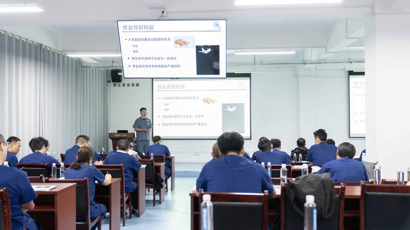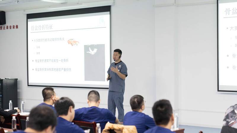 短暂的课间休息后,课程再度启程。本节课由李永歧老师聚焦“骨盆骨折”这一全新模块展开系统分析与深度讲解,丰富的知识点在李老师生动清晰的讲述中层层展开,牢牢吸引了在场每一位医生的注意力。课程理论与实操练习两者交替推进、互为补充。在老师完成操作示范后,参会医生们即刻分组投入骨盆相关技术的实操练习。佰陆讲师团全程指导,针对每位医生练习中遇到的问题,第一时间给予细致解答与精准纠正,确保大家都能及时掌握知识要点。