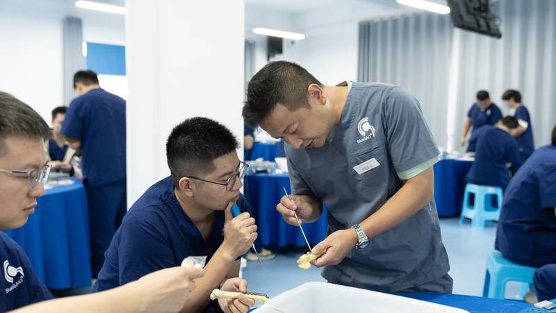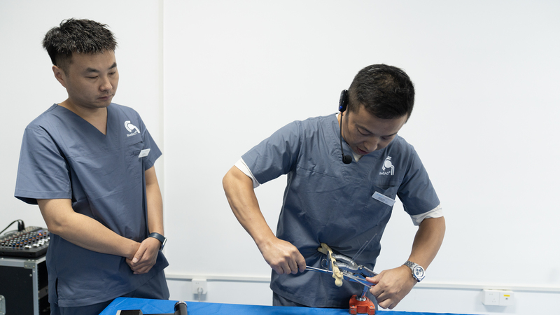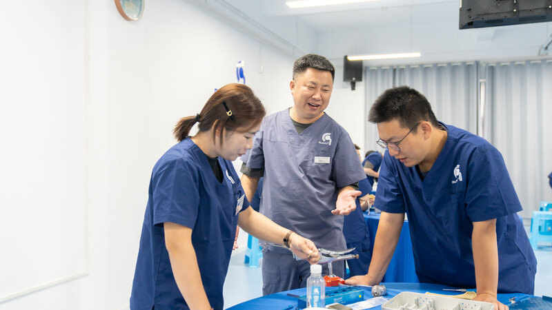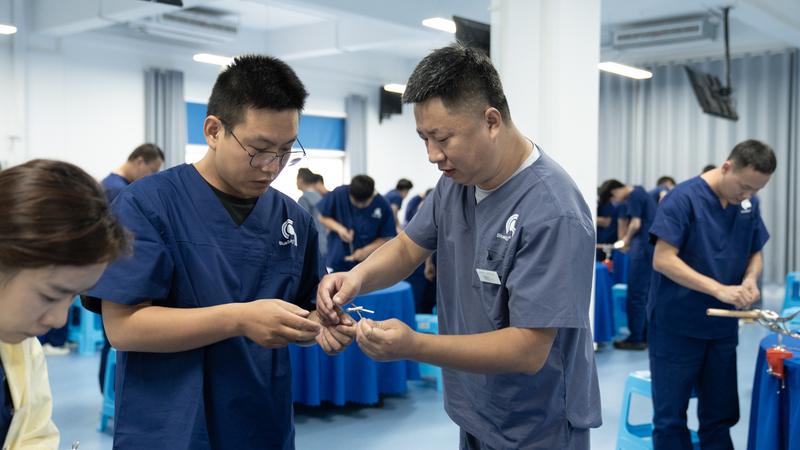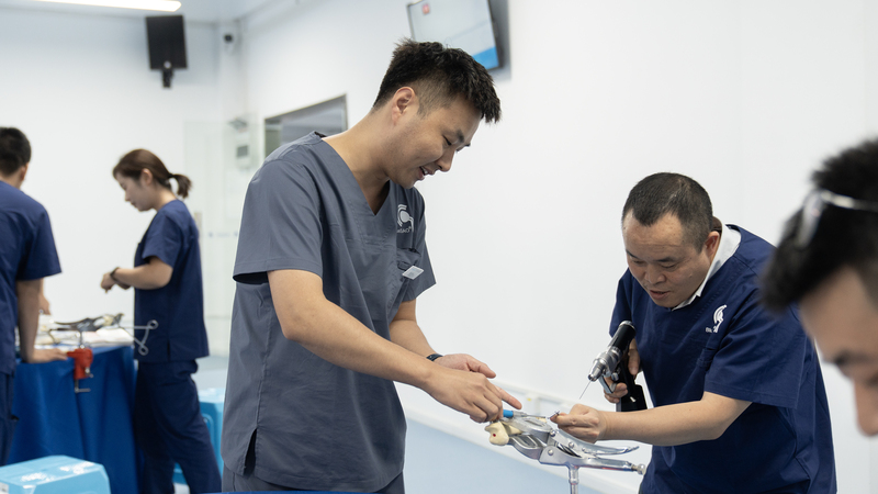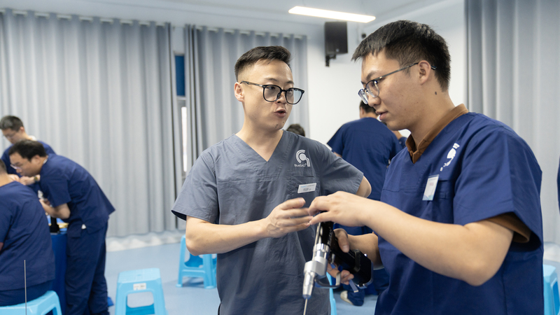从器械握持的细微角度到操作力度的精准把控,老师们针对每个细节进行个性化指导,确保每位医生都能在实操中及时解惑、迅速纠正。这种“手把手”式的现场教学,极大提升了培训的实效性,助力大家扎实掌握核心技术要领。