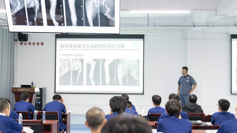 晨光恰好,干货启程!第201期BlueSAO佰陆骨科培训(四肢骨折修复班)第一天课程,已在佰陆骨科培训大厦正式拉开帷幕!小动物骨科资深专家贾新生老师亲授第一课,从四肢骨折修复基础知识娓娓道来,讲解条理清晰、重点突出,帮助参会医生们夯实理论基础,为后续的实操练习与进阶内容做好扎实铺垫。精彩才刚刚开始,跟着贾老师的节奏,沉浸式解锁骨科诊疗新技能,期待各位医生接下来的成长与突破!(与此同时,第六届BlueSAO国际兽医骨科年会、10月BlueSAO佰陆全髋置换THR班正火热进行中,名额紧张,机会难得!有意向的同仁请抓紧时间报名,先到先得。咨询及报名可联系销售电话:15205512870)
